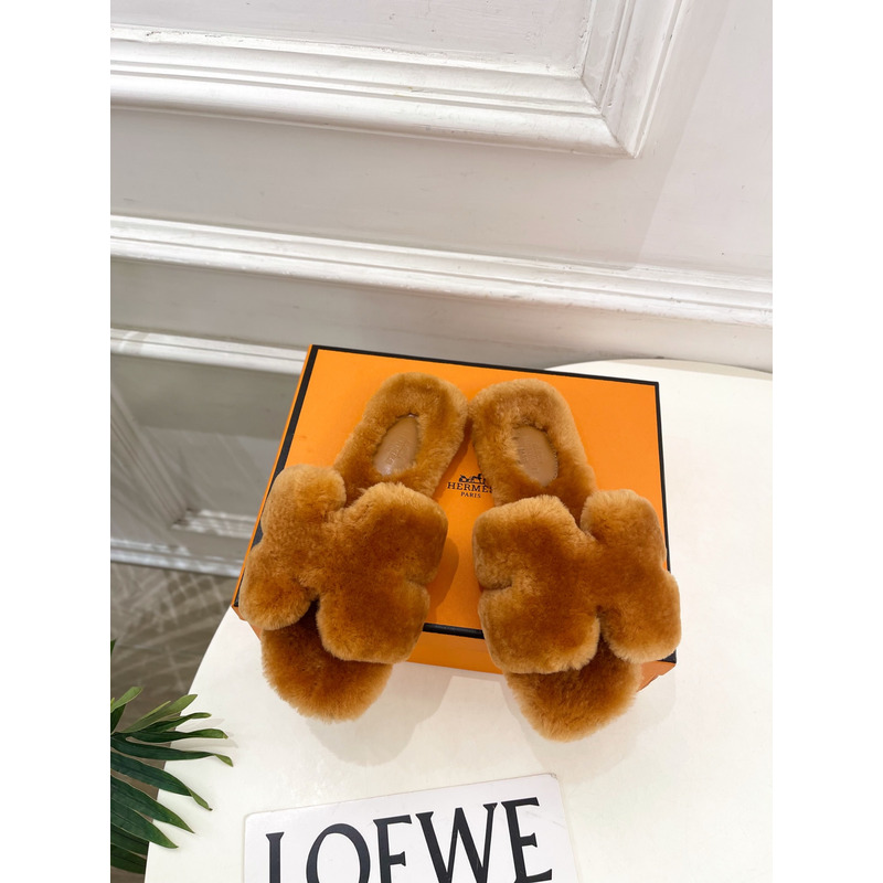 Hermès Shearling Oran Teddy Sandal In White