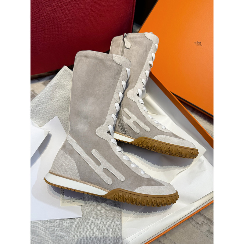 Hermès Lace Up Sneaker Suede Calfskin And Nappa Leather Grey