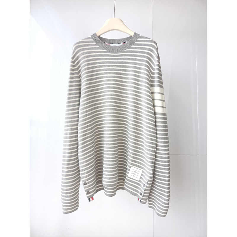 Thom Browne Milano Stripe 4-Bar Long Sleeve Tee Grey / White