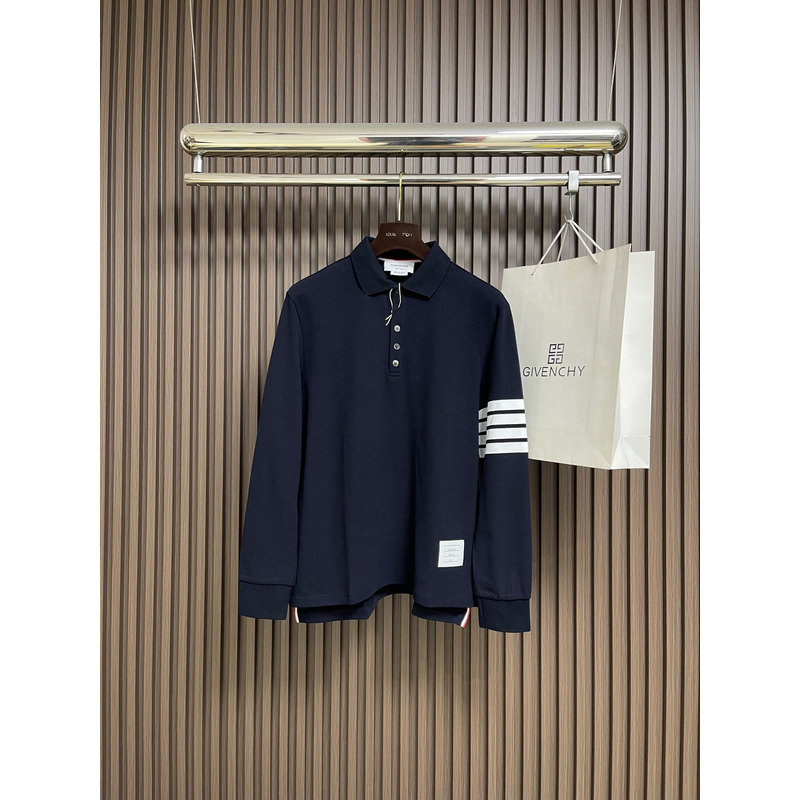 Thom Browne 4-Bar Long-Sleeved Polo Shirt - Blue