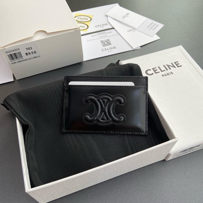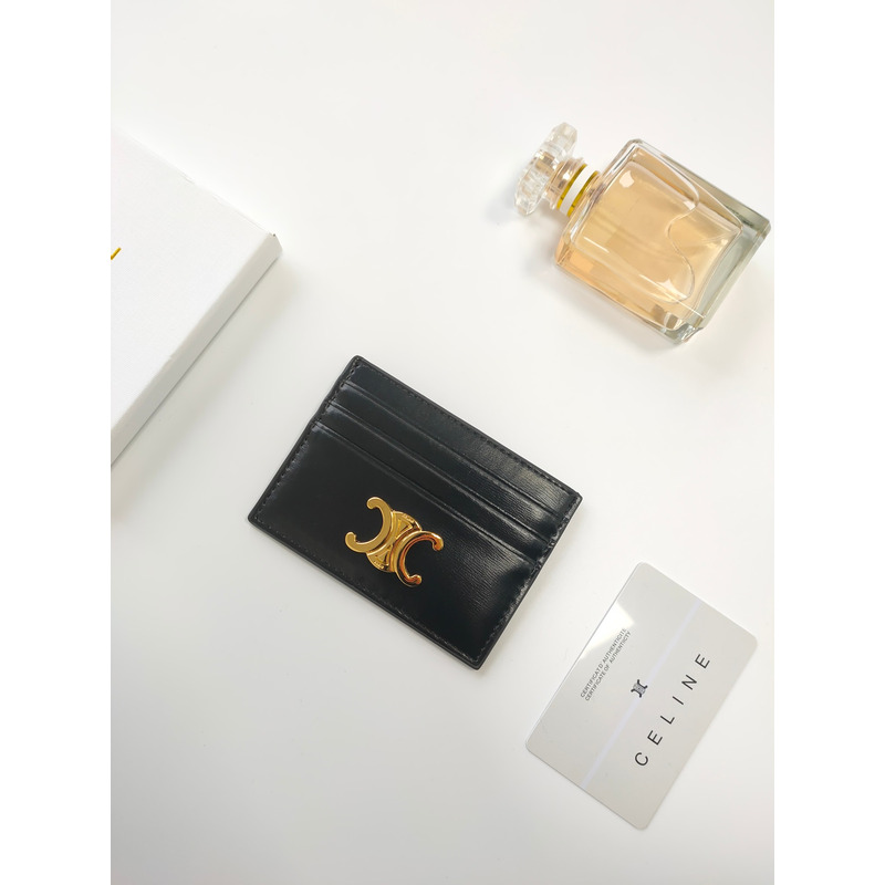Celine Triomphe Shiny Calfskin Card Holder Black