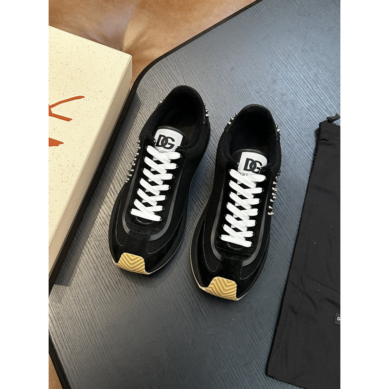 Dolce & Gabbana Running Sneakers In Suede With Stud Embellishments Black