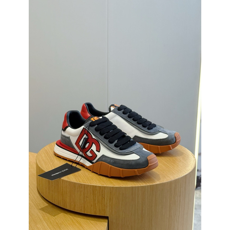 Dolce & Gabbana Gray, White And Red Leather With Suede Accents Sneakers