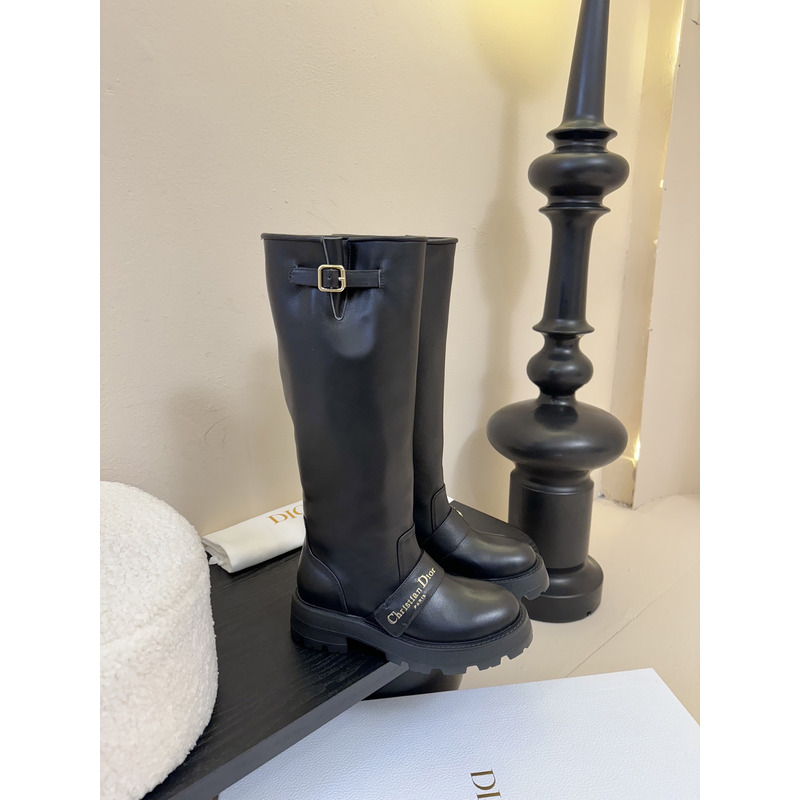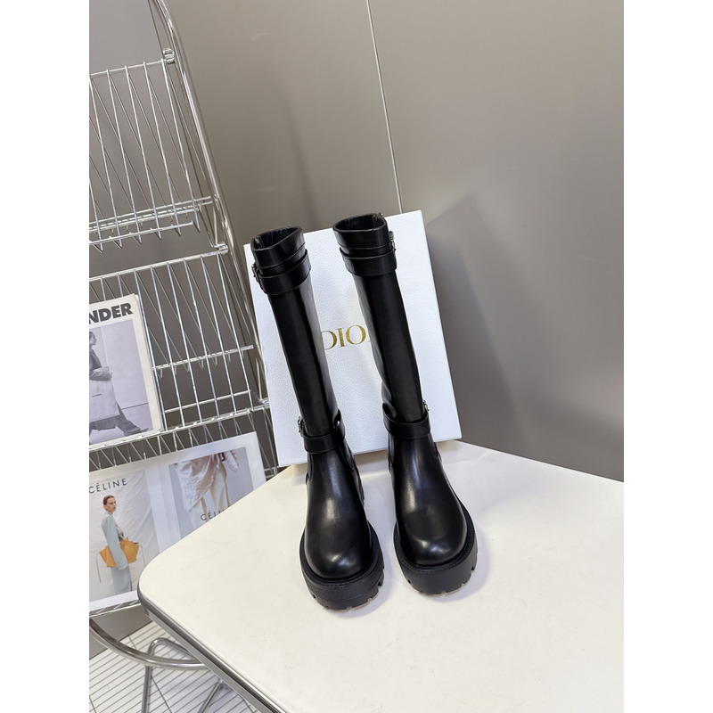 Dior Embellished Black Leather Knee-High Boots With Buckle And Logo