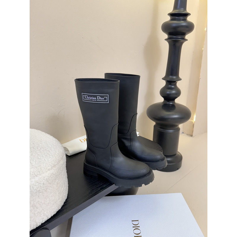 Dior D-Scots Boots In Black Rubber-Effect Cowhide Leather