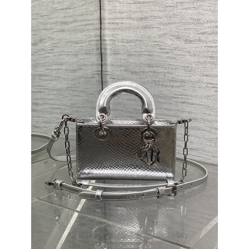 Dior Mini Lady Dior Bag in Metallic Calfskin Silver
