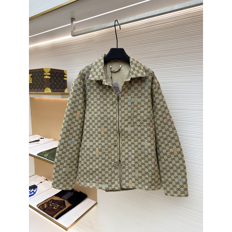 Gucci GG Canvas Jacket In Camel And Dark Brown