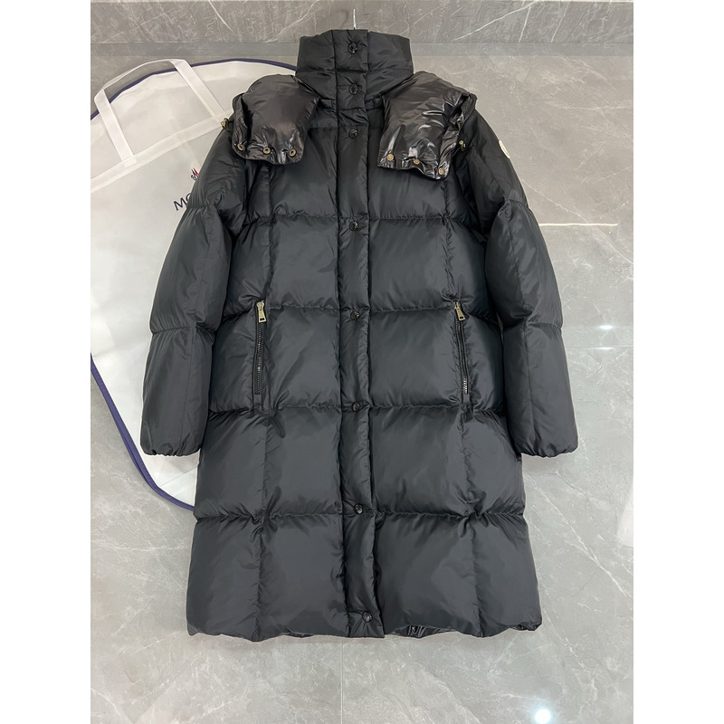 Moncler Litte Square-Quilted Hooded Long Down Jacket Black