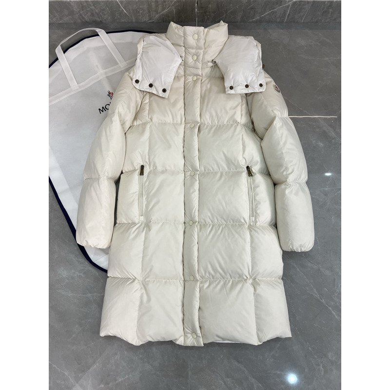 Moncler Litte Square-Quilted Hooded Long Down Jacket White