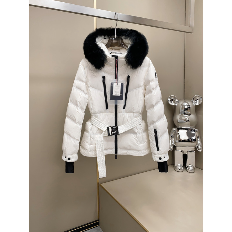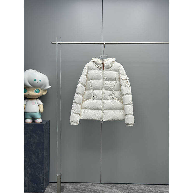 Moncler White Boed Hooded Shearling-Trimmed Short Down Jacket