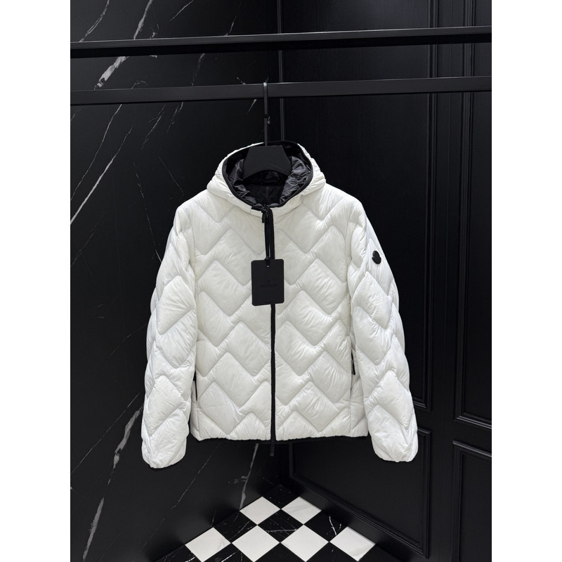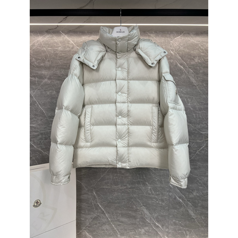 Moncler Bimont Hooded Wavequilted Short Down Jacket White