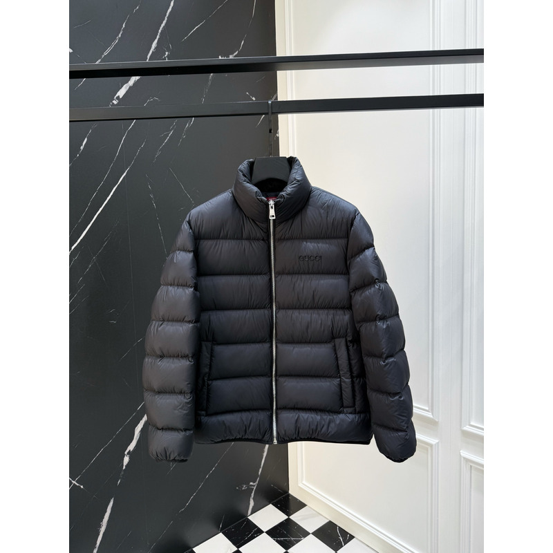 Gucci Quilted Nylon Down Jacket with Logo In Black