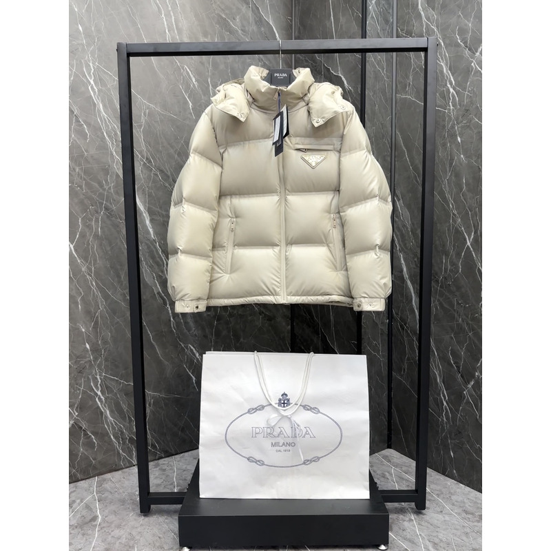 Prada Oversized Technical Re-Nylon Down Jacket Light Beige