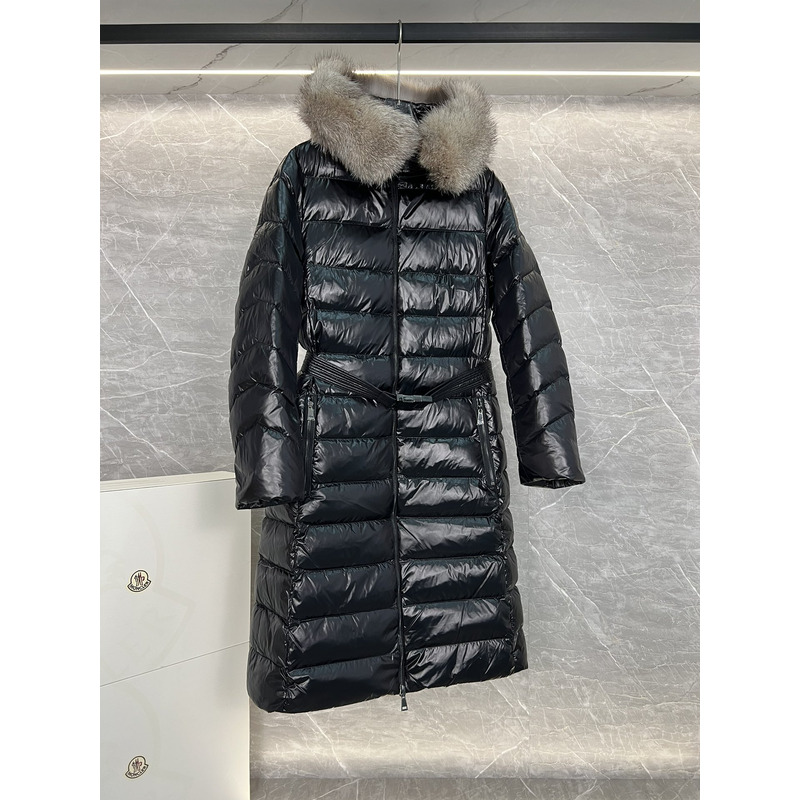 Moncler Black & Beige Boedic Hooded Shearling-Trimmed Long Down Jacket