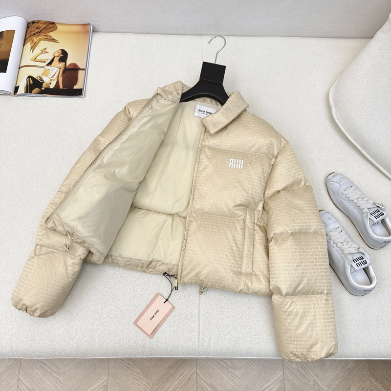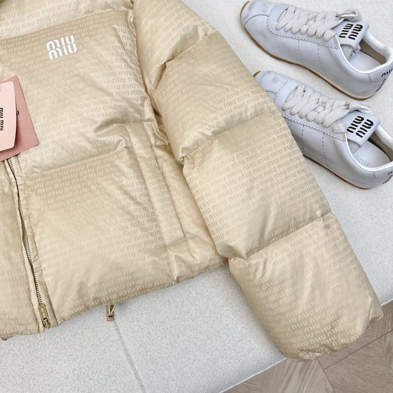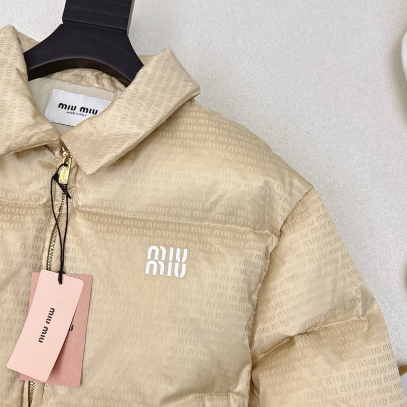 Miu Miu Logo-jacquard Puffer Jacket Light Beige