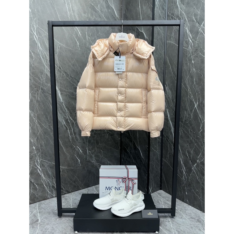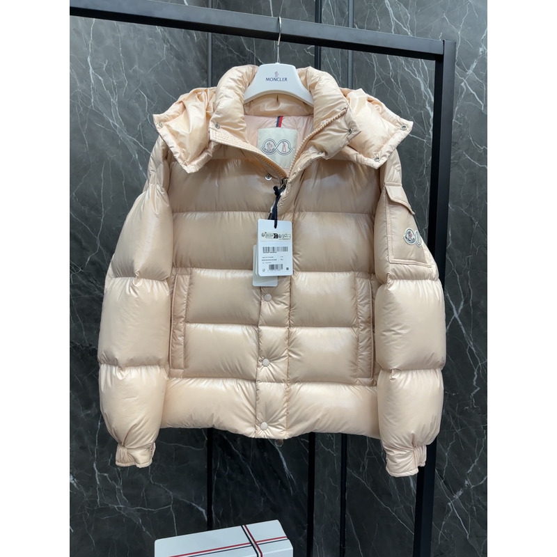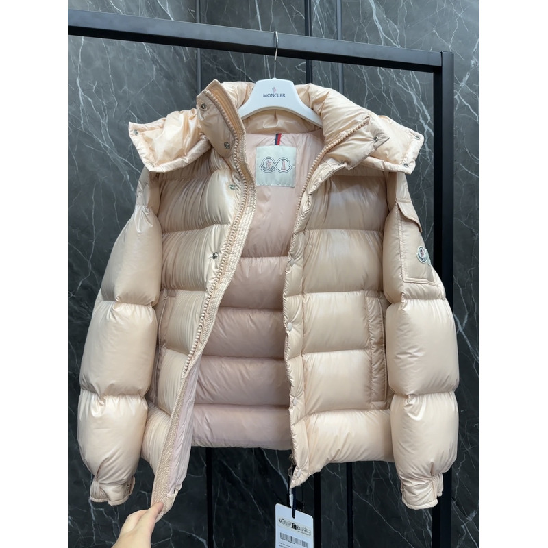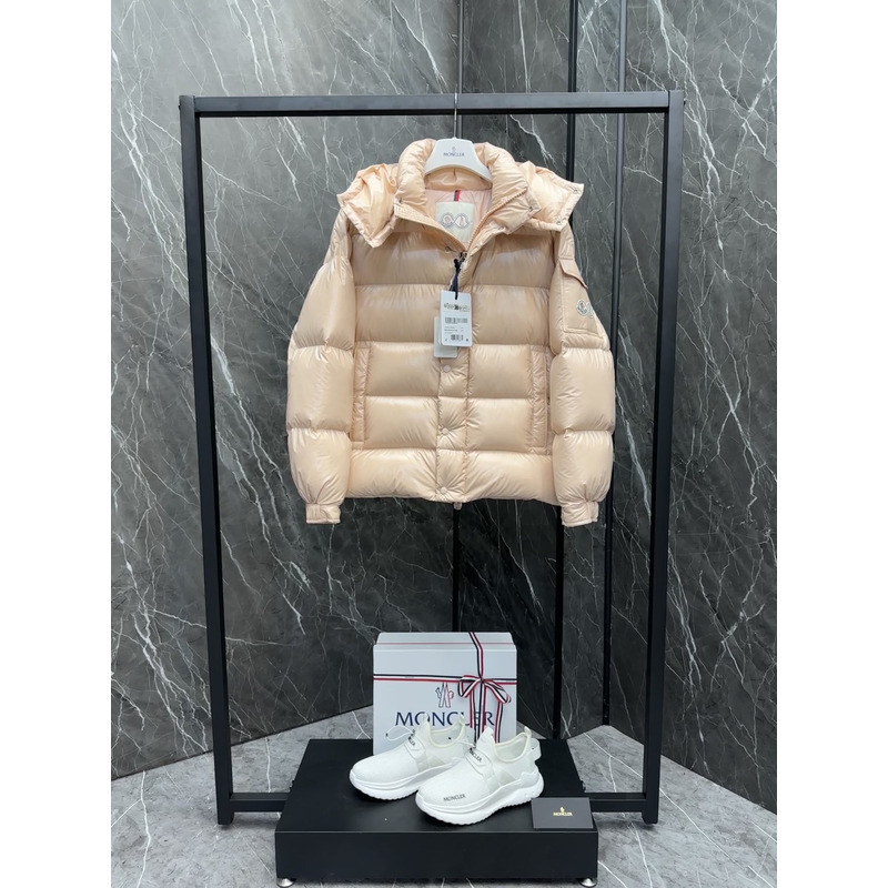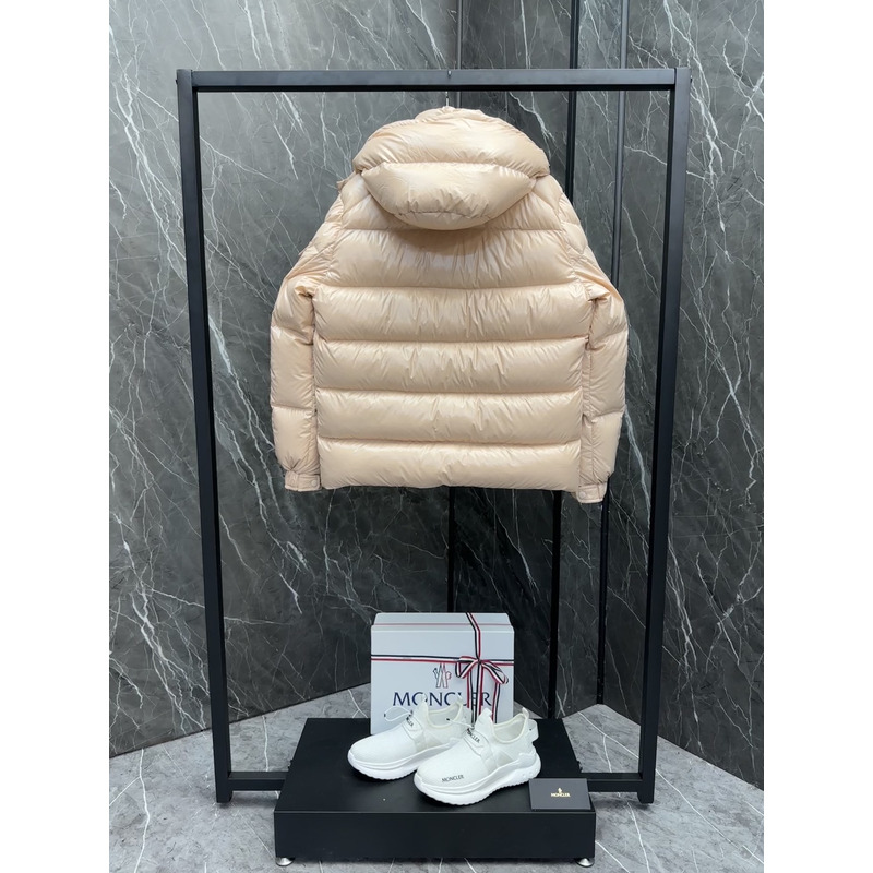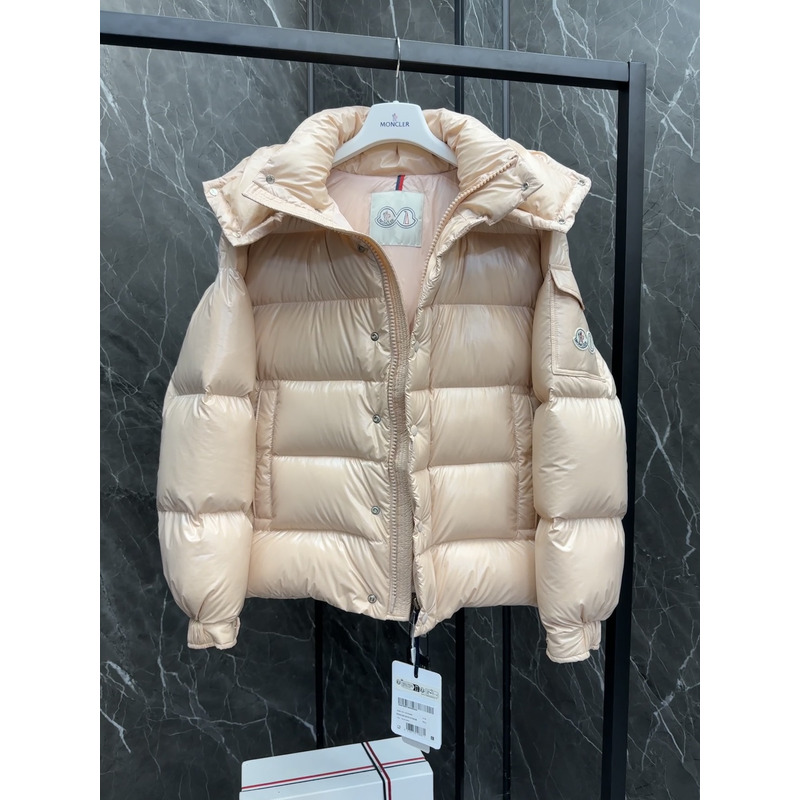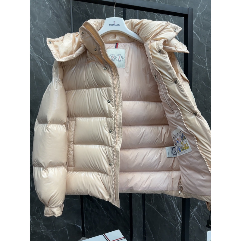 Moncler Hooded Short Down Jacket In Beige