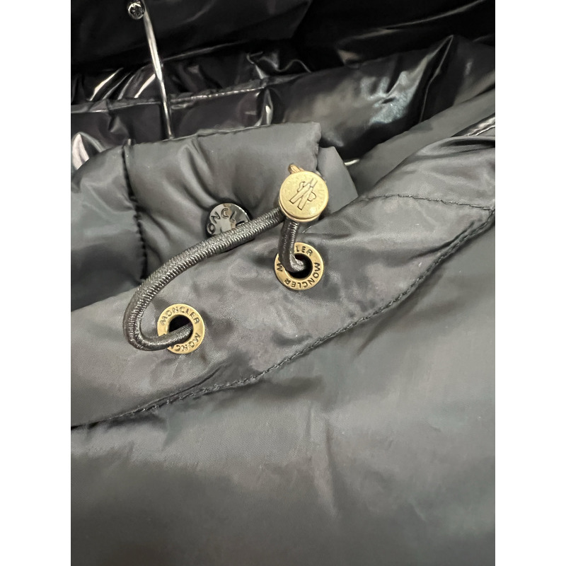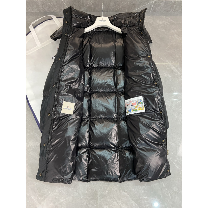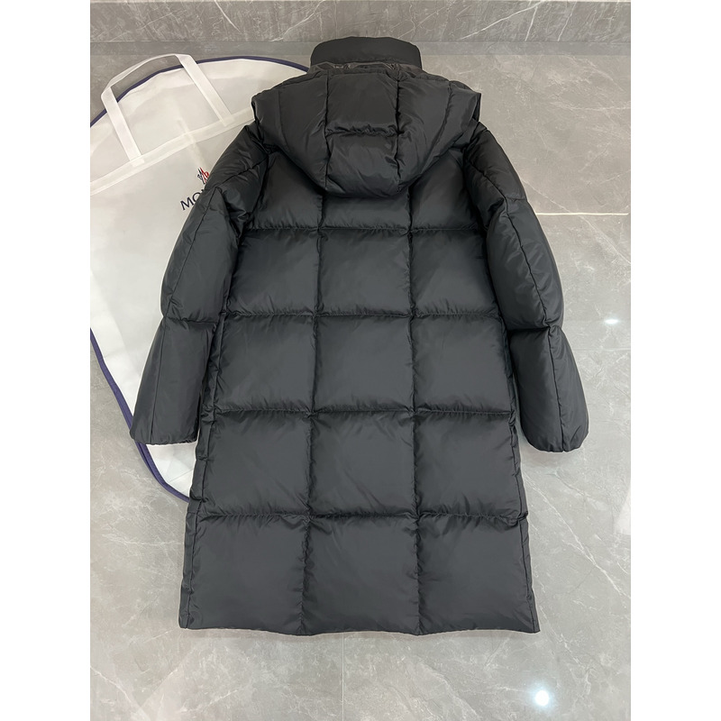 Moncler Litte Square-Quilted Hooded Long Down Jacket Black