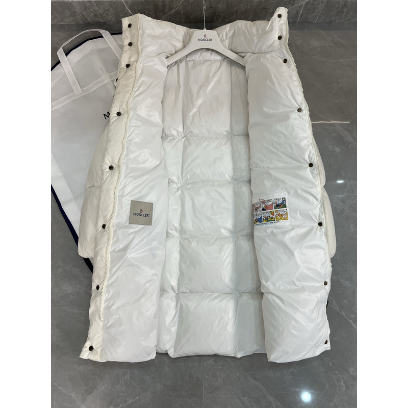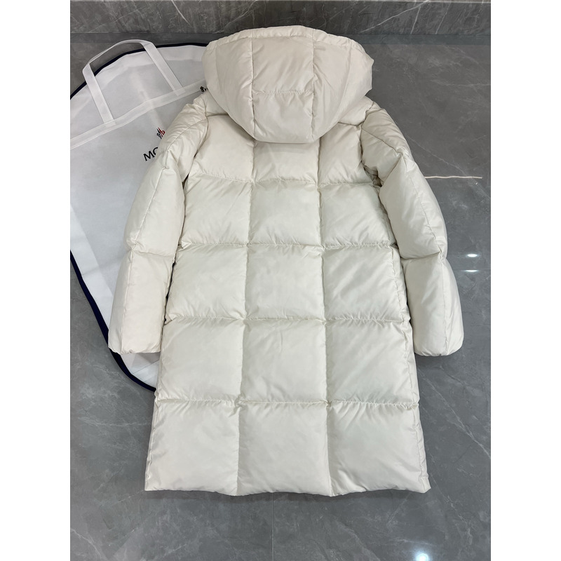 Moncler Litte Square-Quilted Hooded Long Down Jacket White