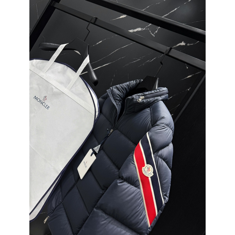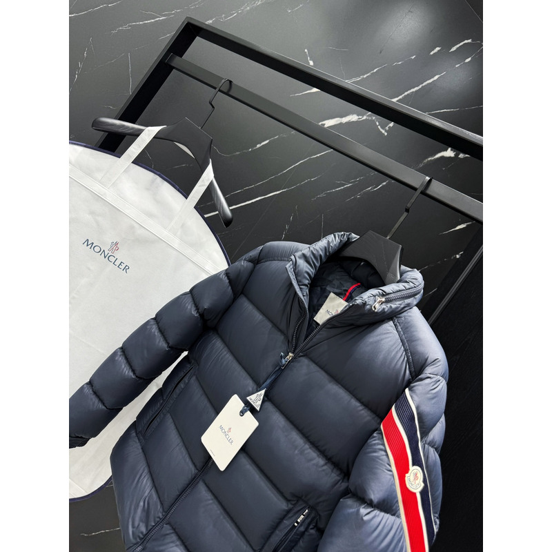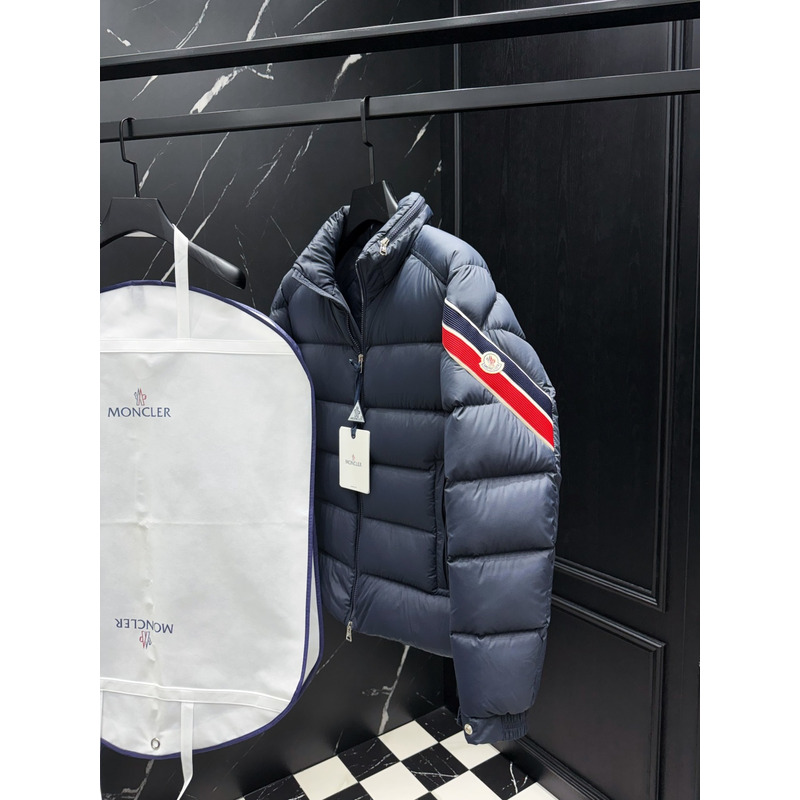 Moncler Quilted Down Jacket In Navy Blue