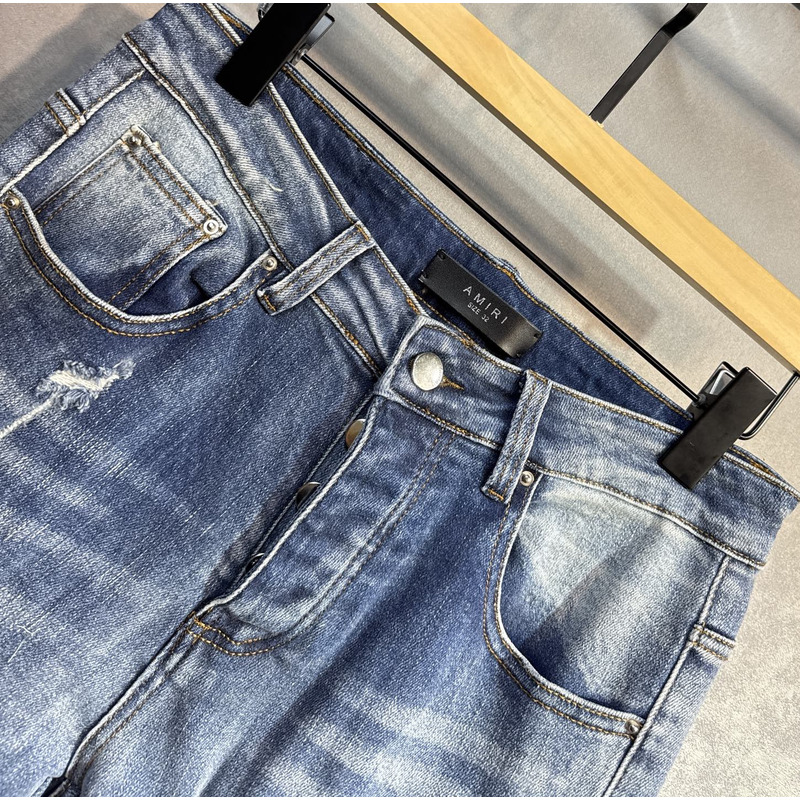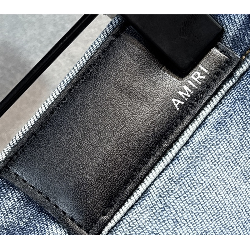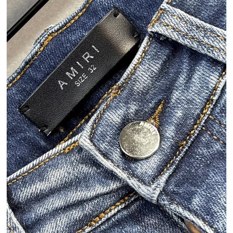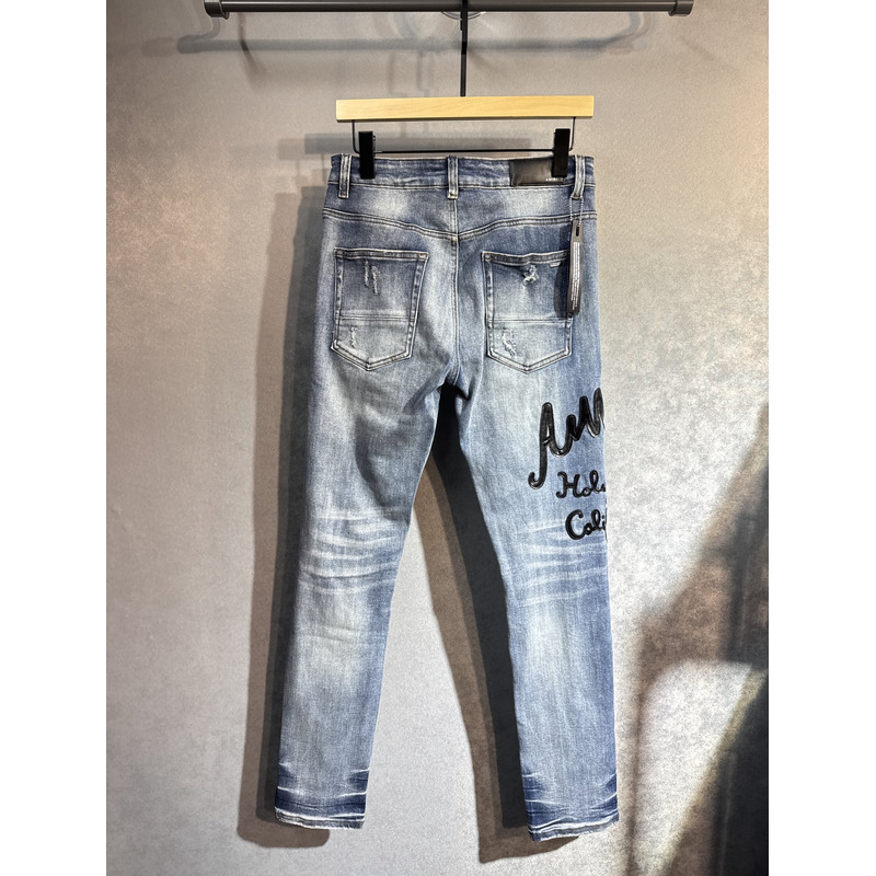 Amiri Bones Black Lettering Embroidered Distressed Jeans