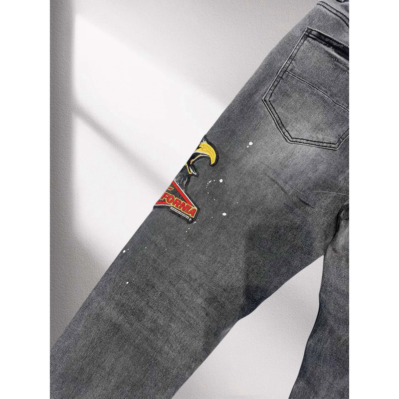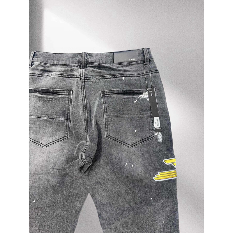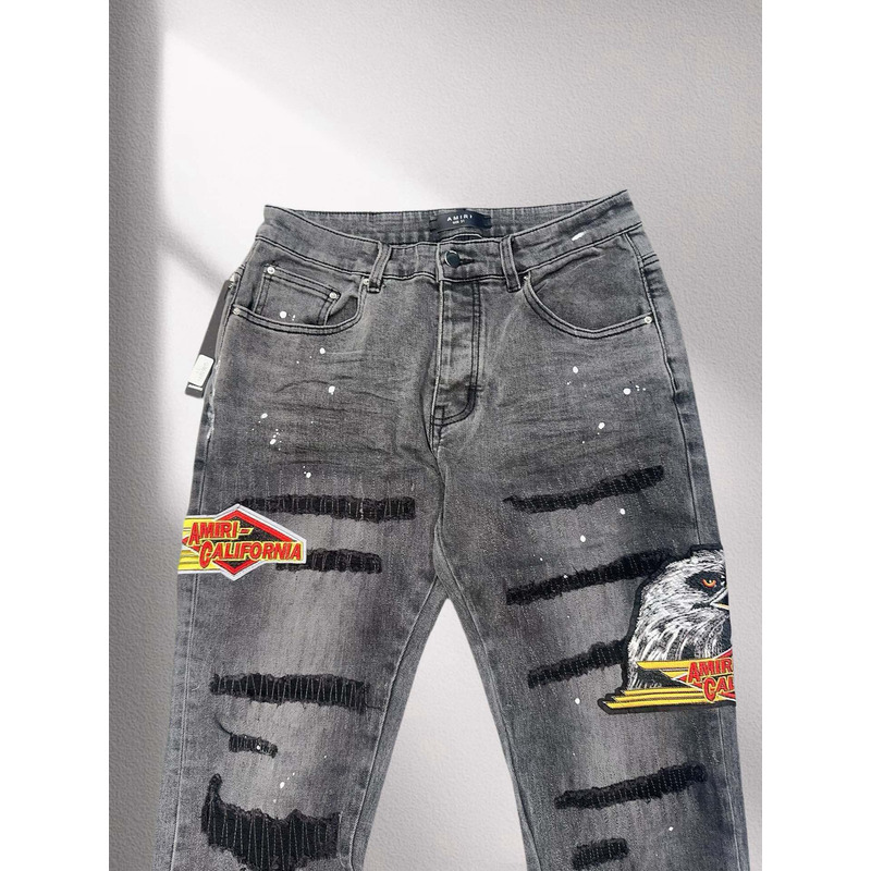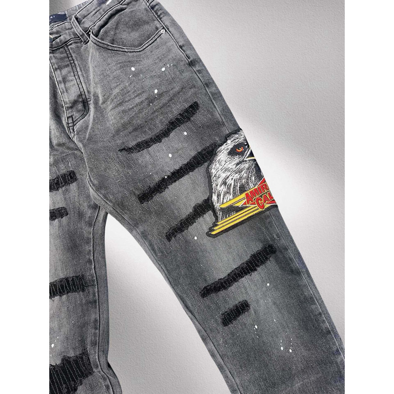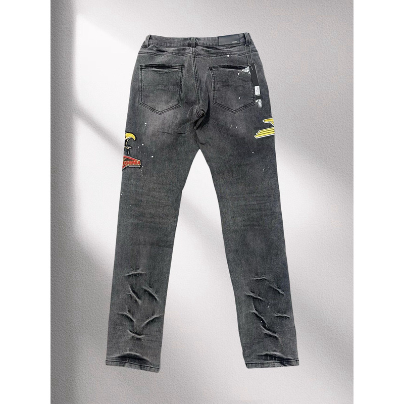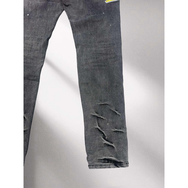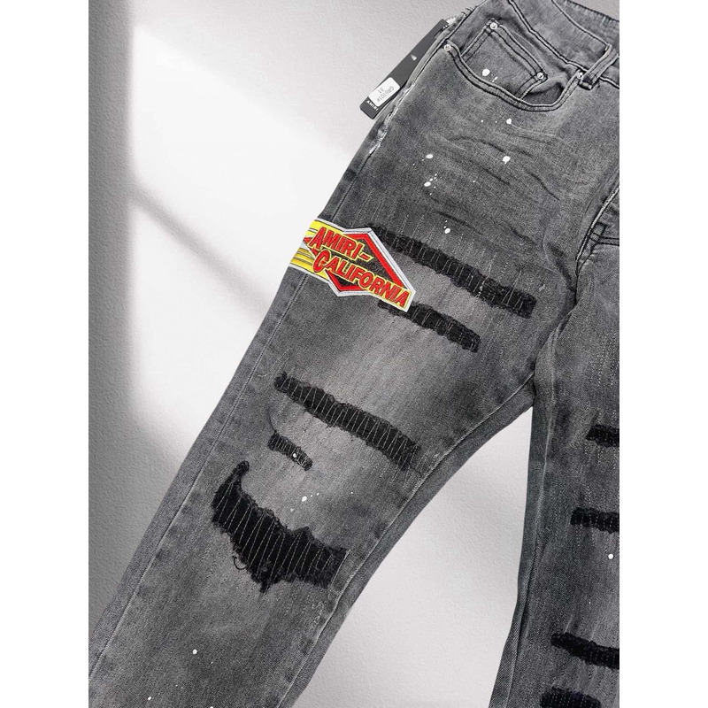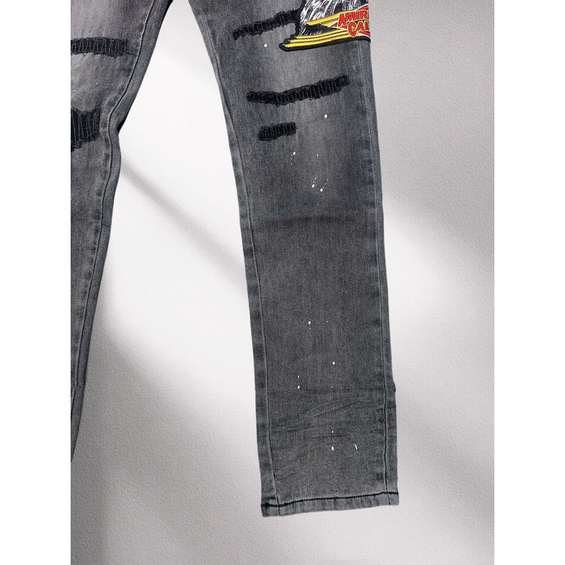 Amiri Distressed Skinny Jean With Embroidered Printed In Washed Dark Grey