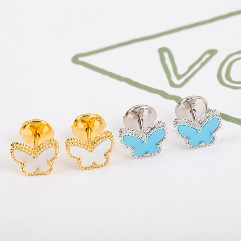 Van Cleef & ArPels Sweet Alhambra Butterfly Earstuds In Gold/Silver