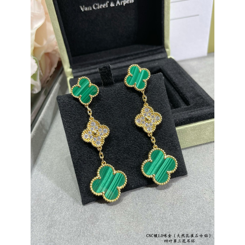 Van Cleef & ArPels Magic Alhambra Earrings 3 Motifs Yellow Gold & Diamond & Malachite