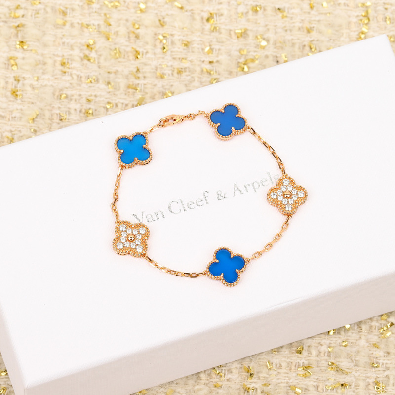 Van Cleef & ArPels Vintage Alhambra Bracelet 5 Motifs Blue And Glod / Rose Glod