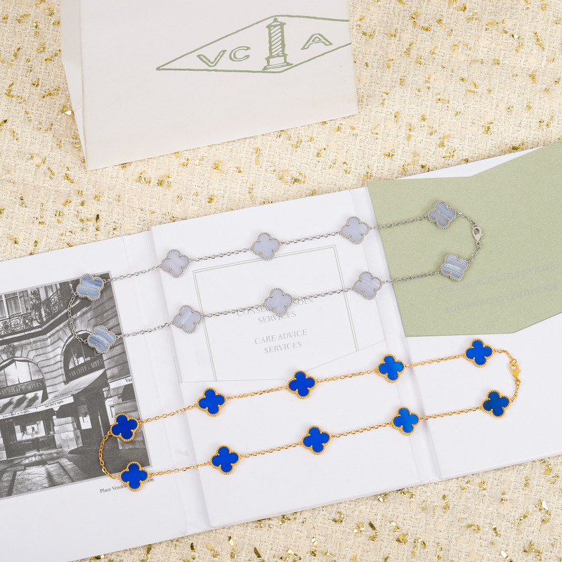 Van Cleef & ArPels Vintage Alhambra Necklace 10 Motifs Silver / Blue & Glod
