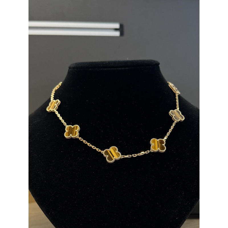 Van Cleef & ArPels Vintage Alhambra Long Necklace, 18K Yellow Gold with Tiger\'s Eye