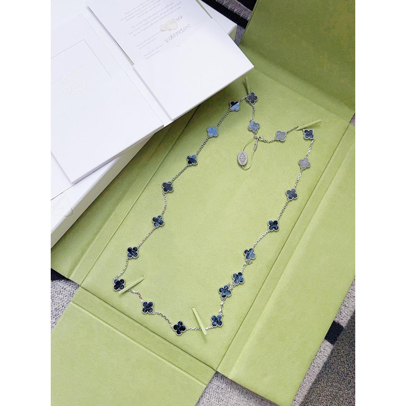 Van Cleef & ArPels Vintage Alhambra Long Necklace 20 Motifs In Silver & Blue