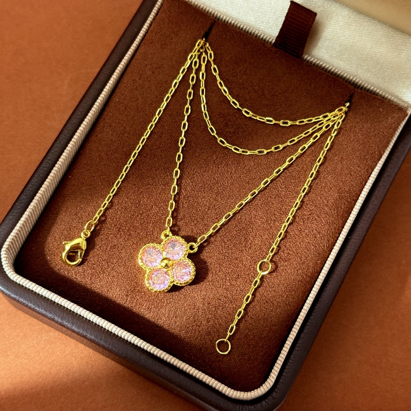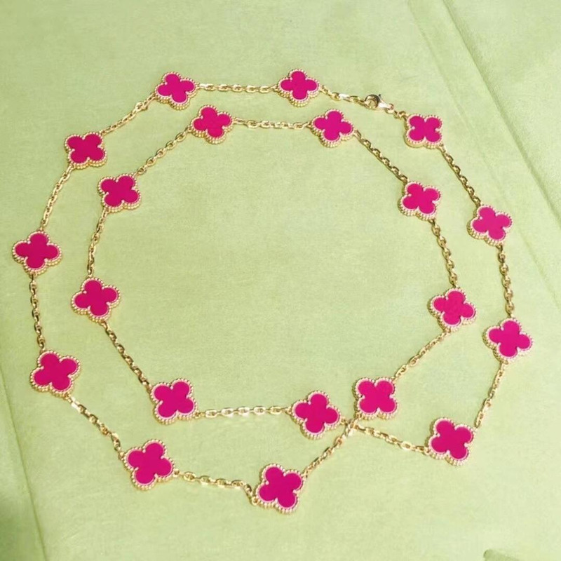 Van Cleef & ArPels Vintage Alhambra Long Necklace 20 Motifs In Gold & Pink