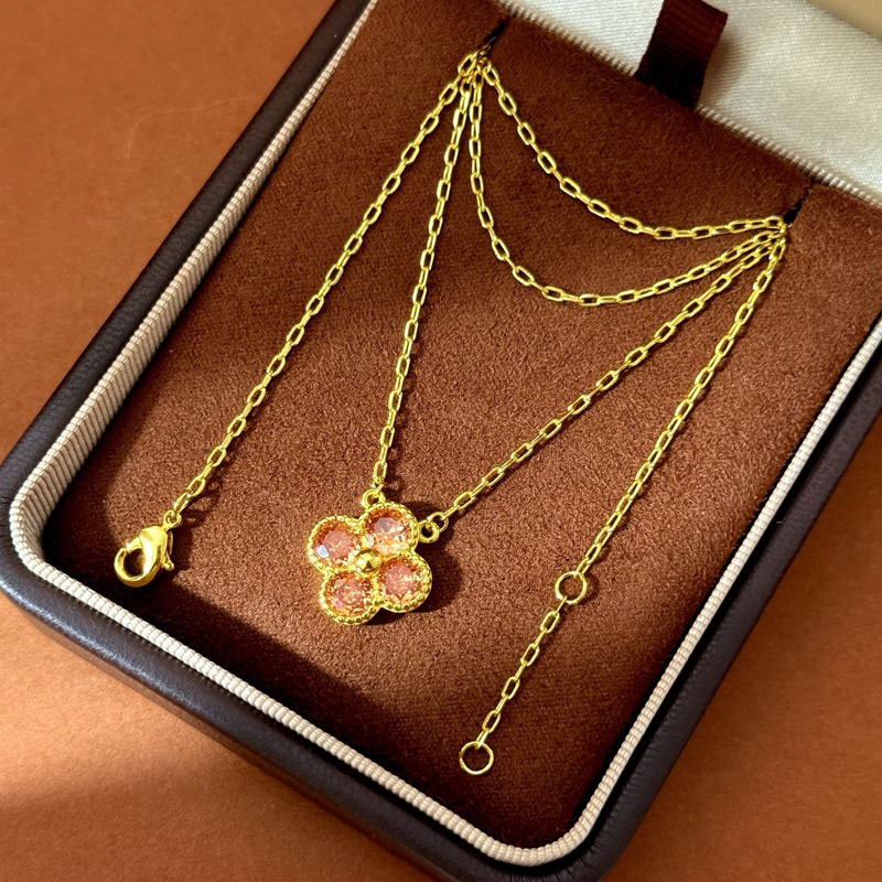 Van Cleef & Arpels Vintage Alhambra Pendant 18K Yellow Gold With Pink Chalcedony
