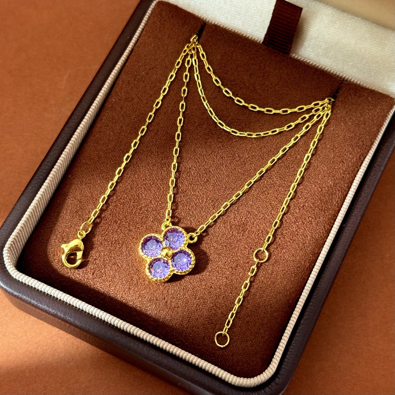 Van Cleef & Arpels Vintage Alhambra Pendant 18K Yellow Gold & Lavender Purple