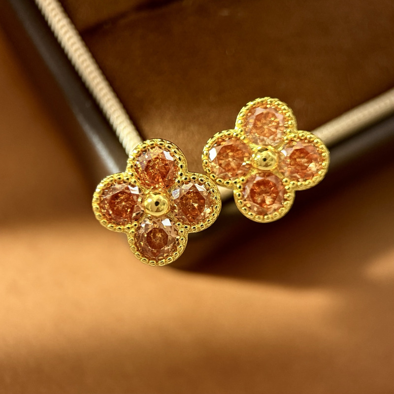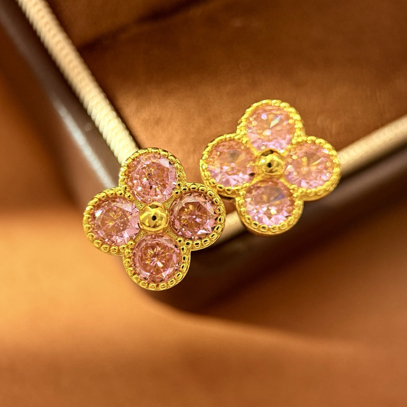 Van Cleef & ArPels Vintage Alhambra Earrings In Yellow Gold With Pink Chalcedony