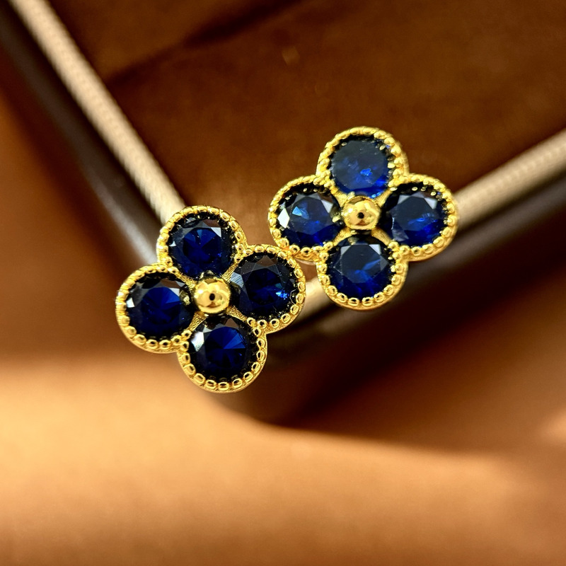 Van Cleef & ArPels Vintage Alhambra Earrings In Yellow Gold With Sapphire