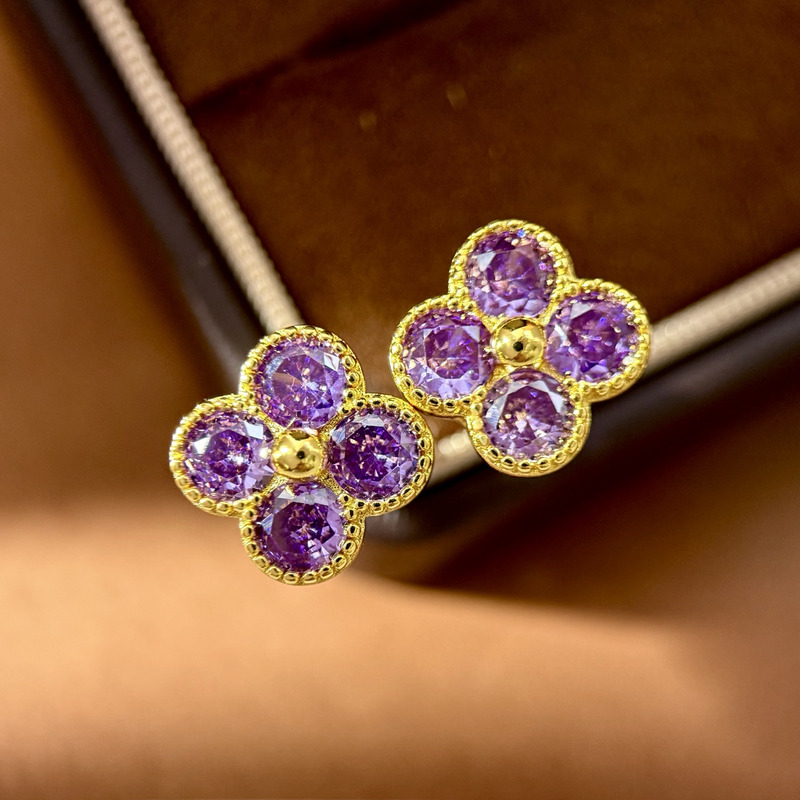 Van Cleef & ArPels Vintage Alhambra Earrings In Yellow Gold & Lavender Purple