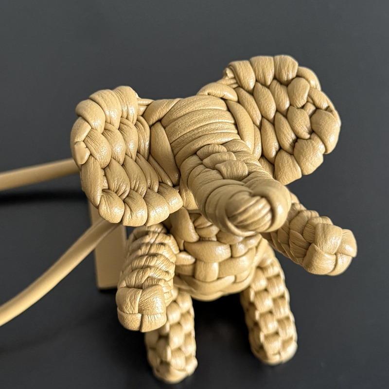 Bottega Veneta Elephant Charm Intreccio Nappa Leather Light Brown