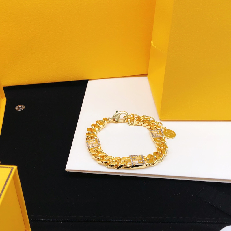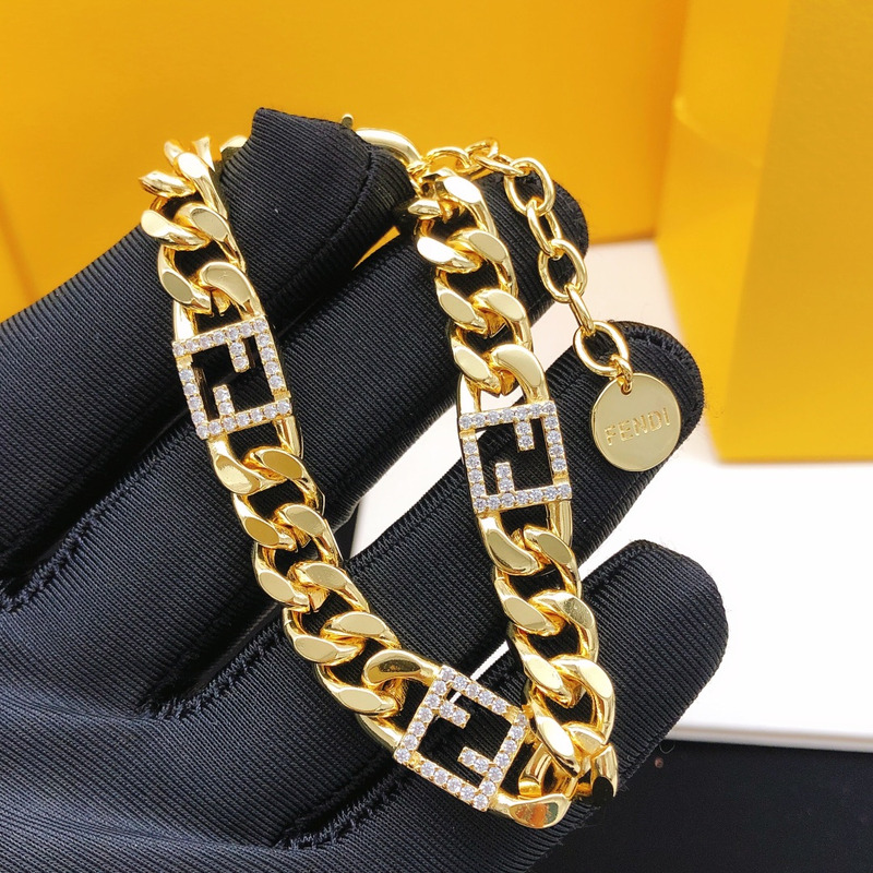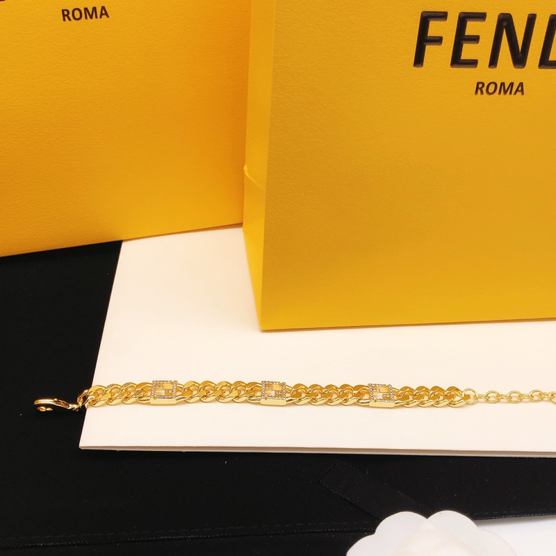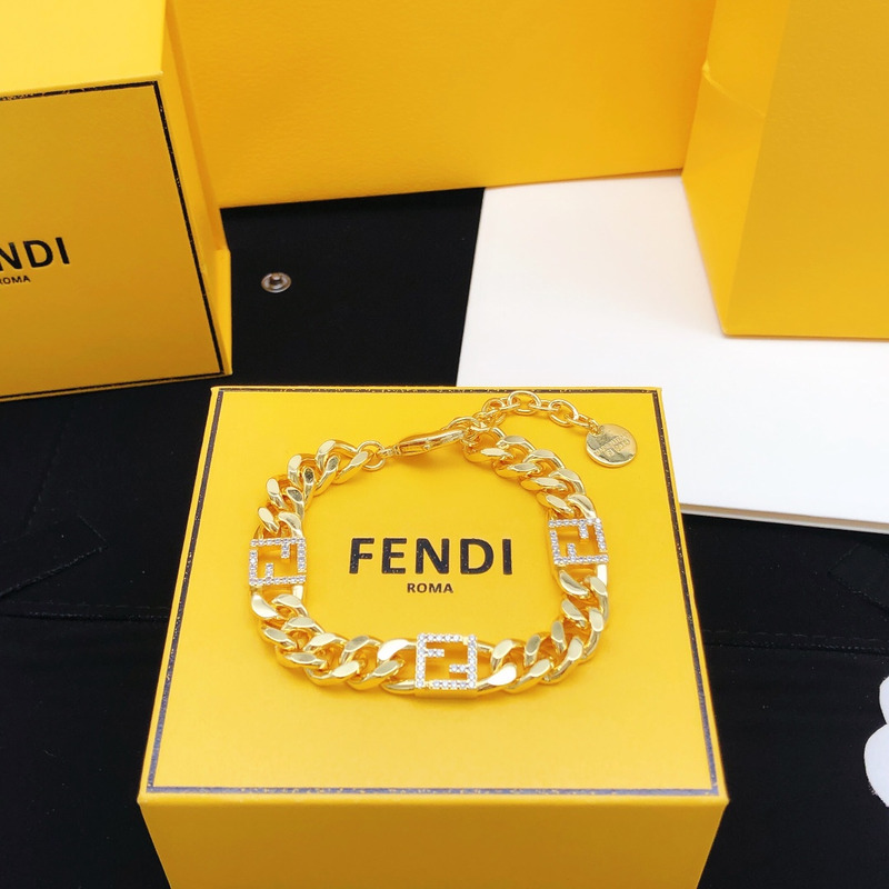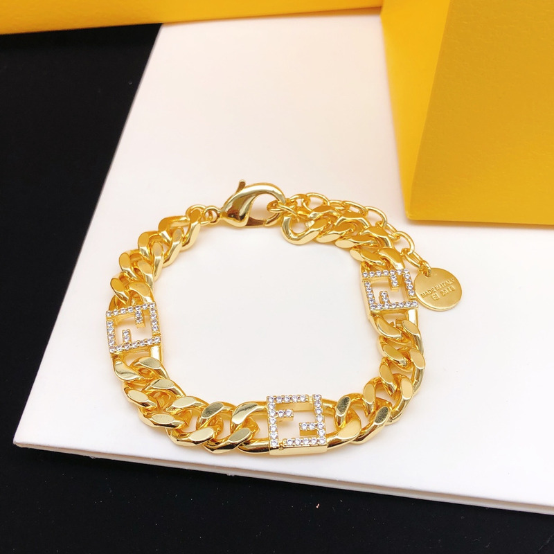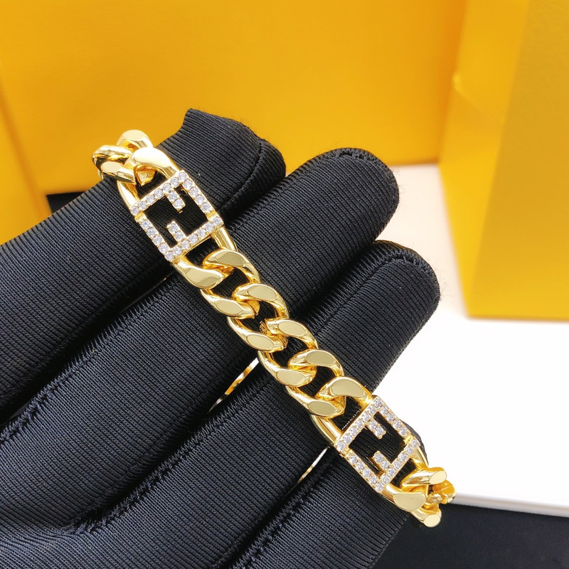 Fendi Gold-Tone Metal FF Logo Crystal-Embellished Bracelet