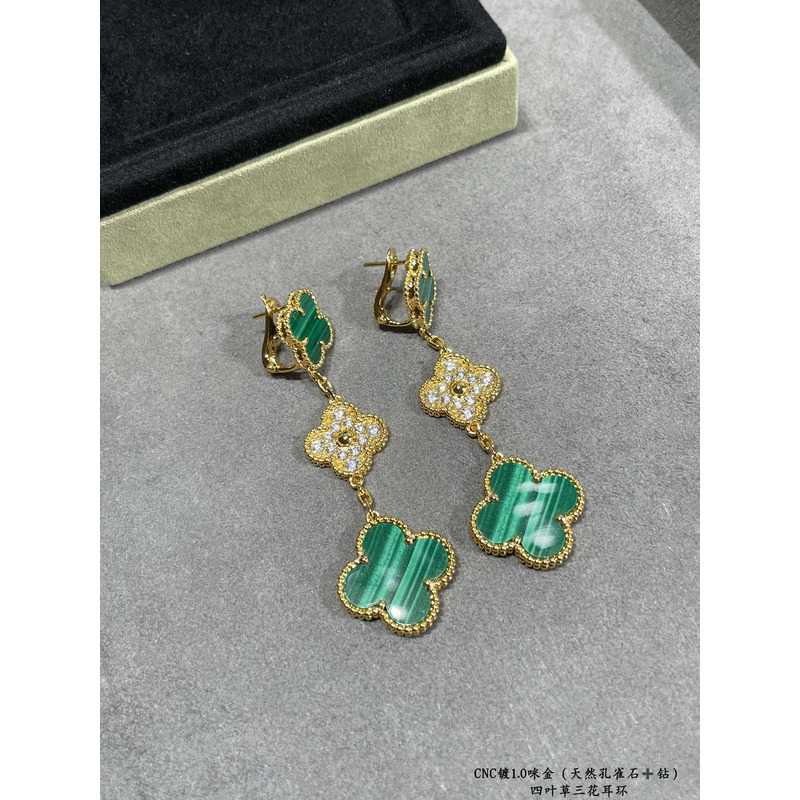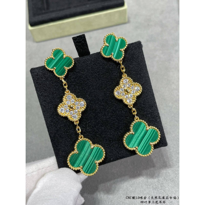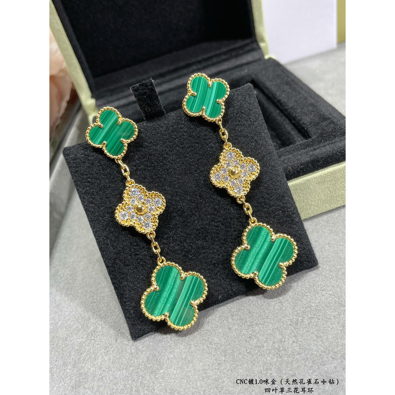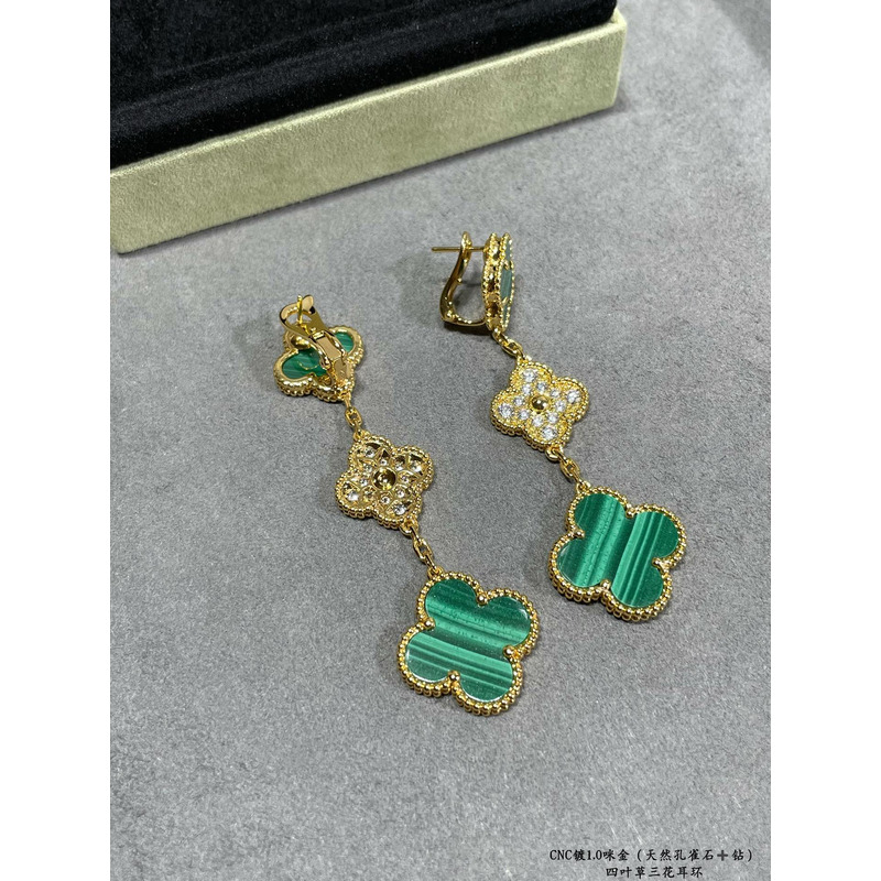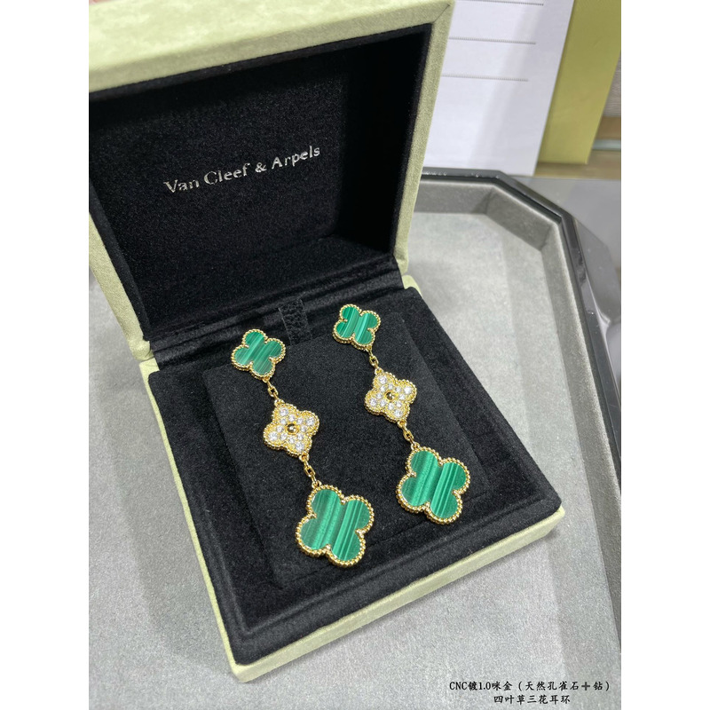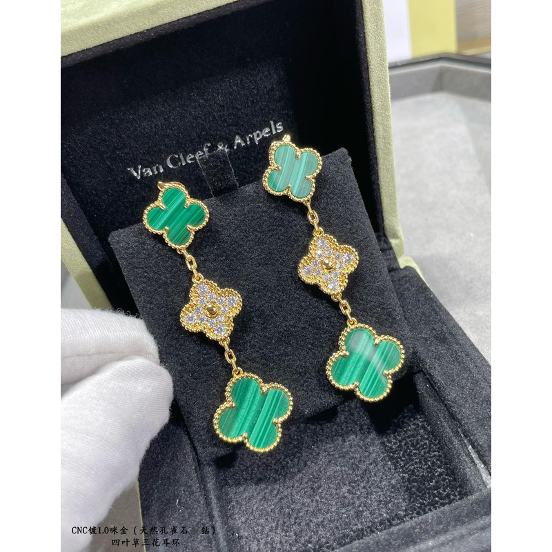 Van Cleef & ArPels Magic Alhambra Earrings 3 Motifs Yellow Gold & Diamond & Malachite