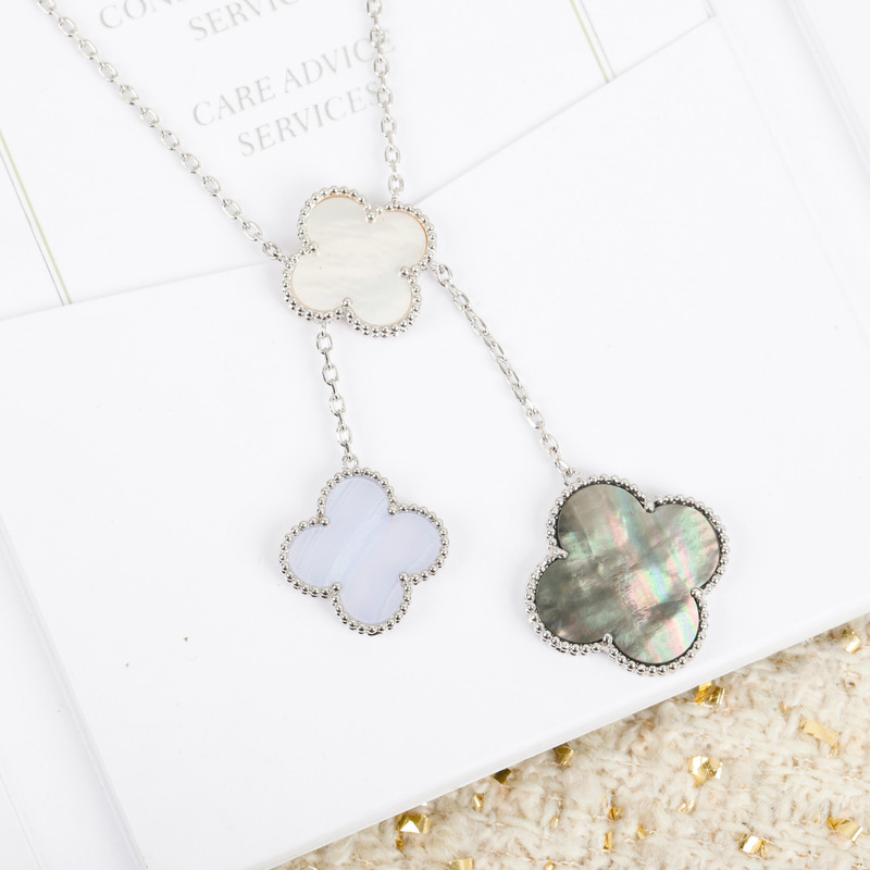 Van Cleef & ArPels Magic Alhambra necklace, 6 motifs White Gold & Chalcedony & Mother-of-pearl