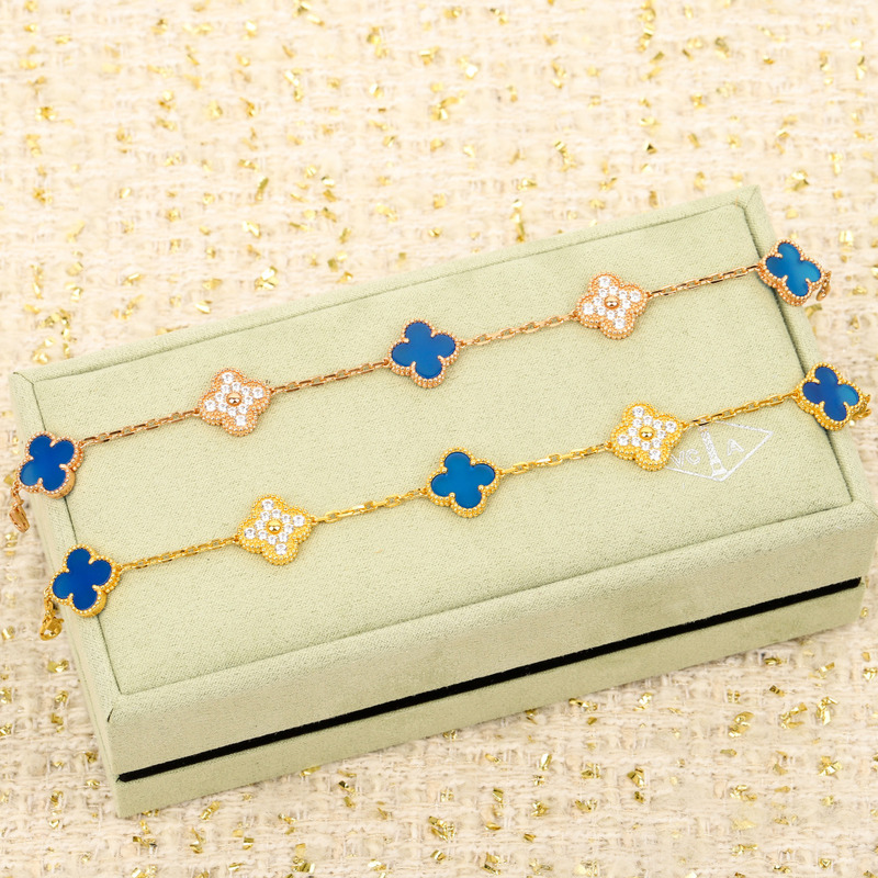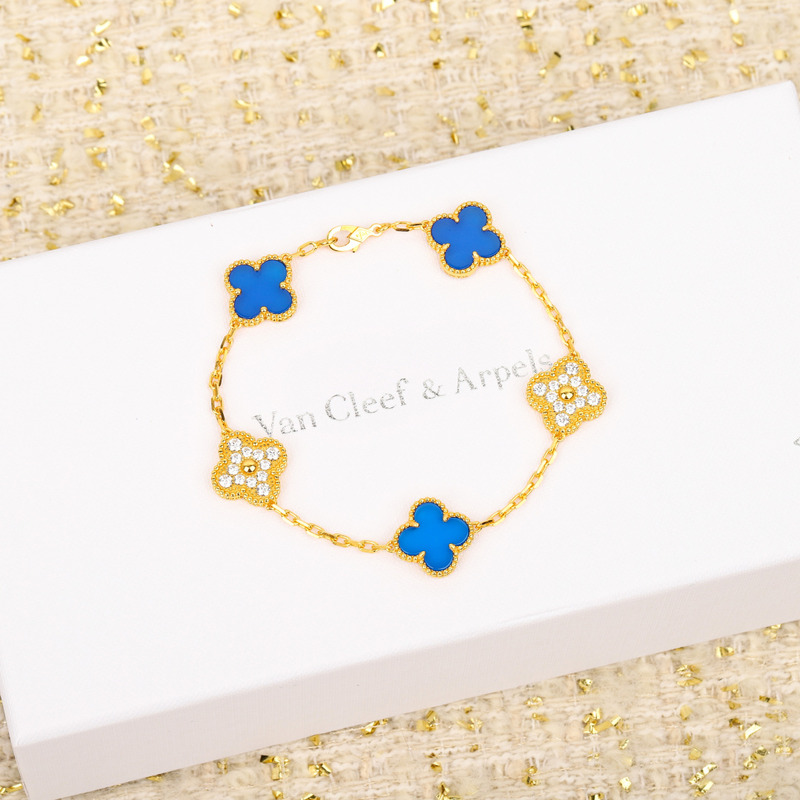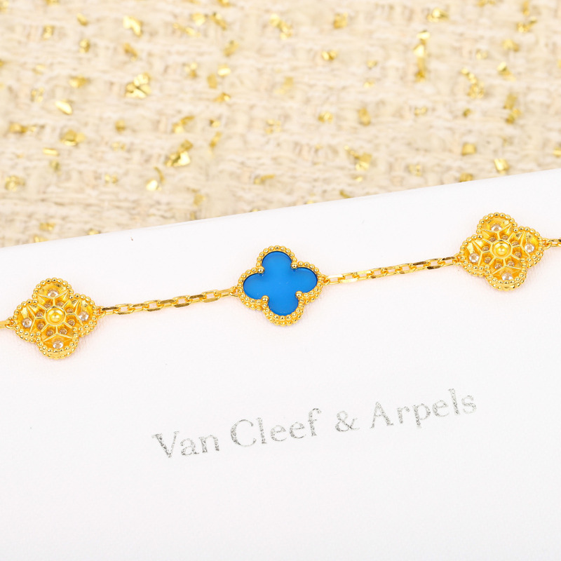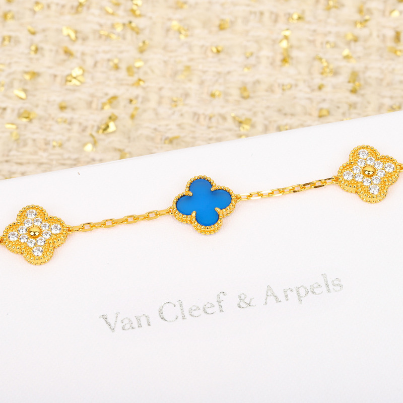 Van Cleef & ArPels Vintage Alhambra Bracelet 5 Motifs Blue And Glod / Rose Glod