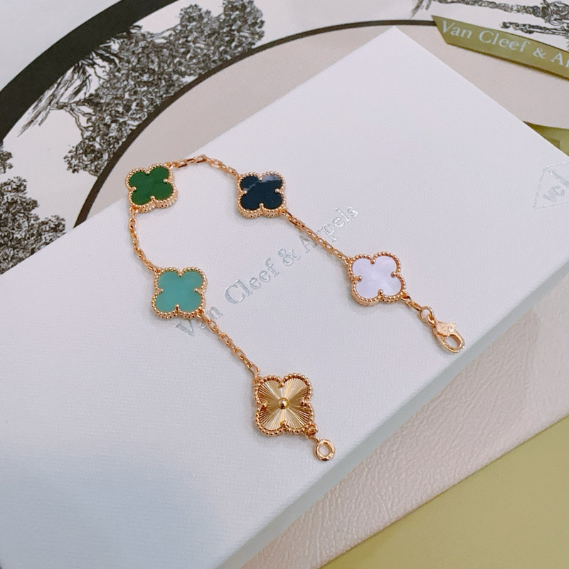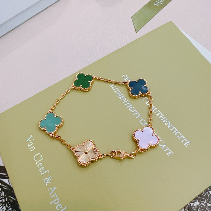 Van Cleef & Arpels Vintage Alhambra Bracelet Five Motifs In Silver/Green/Blue