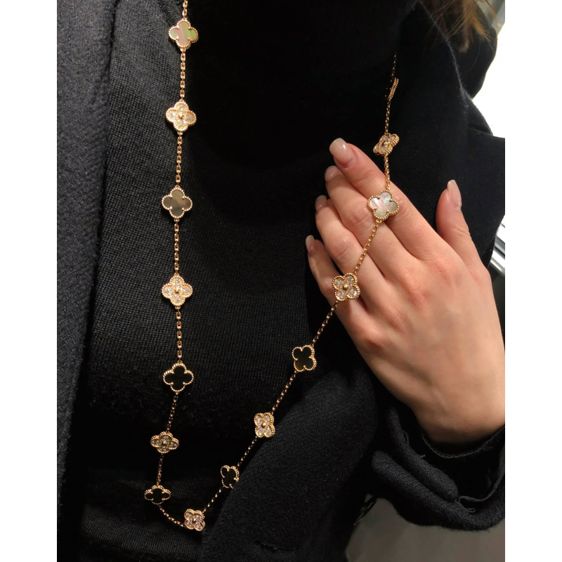 Van Cleef & ArPels Vintage Alhambra Long Necklace 20 Motifs In Multicolor