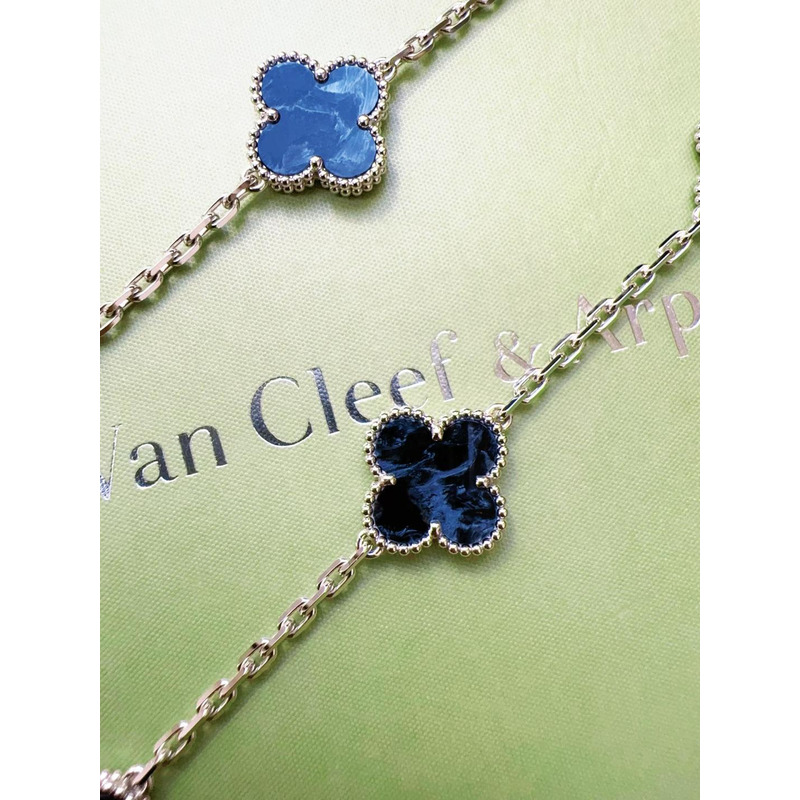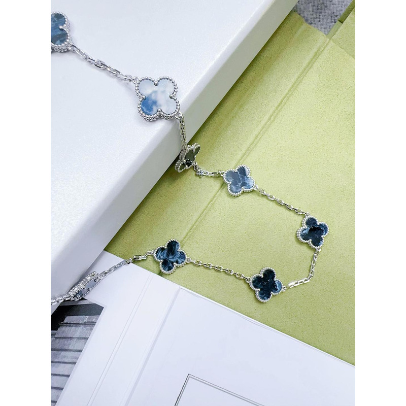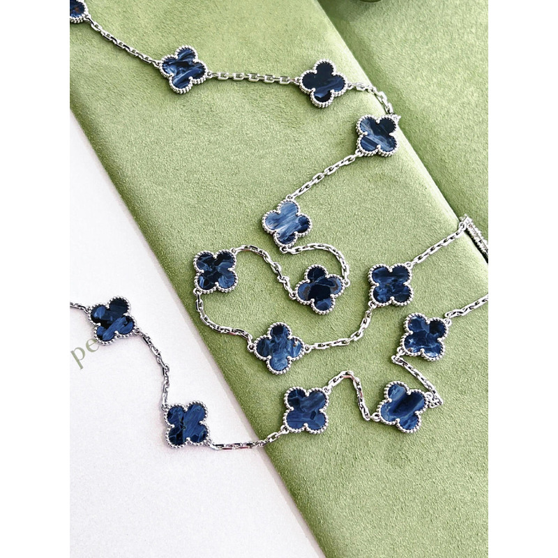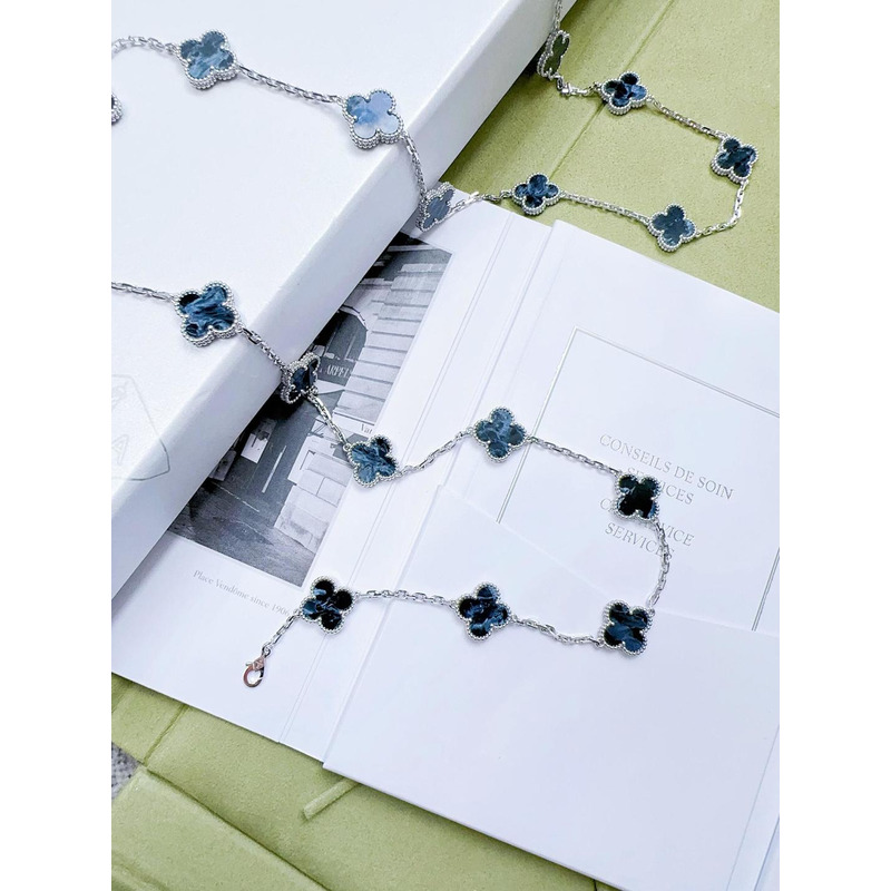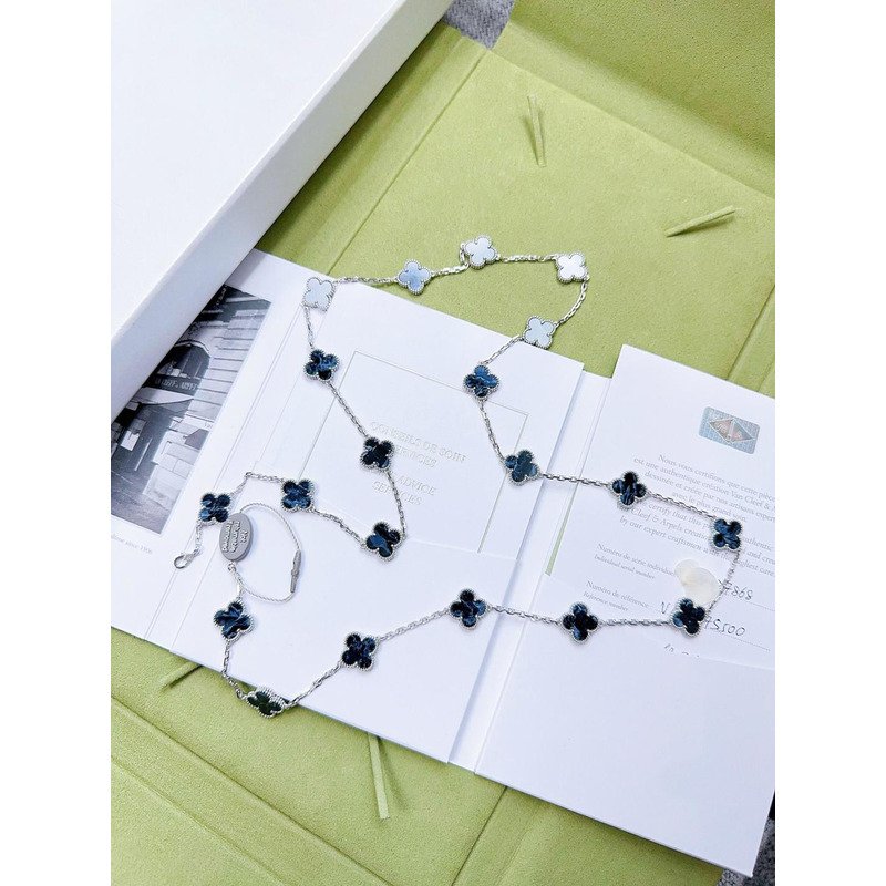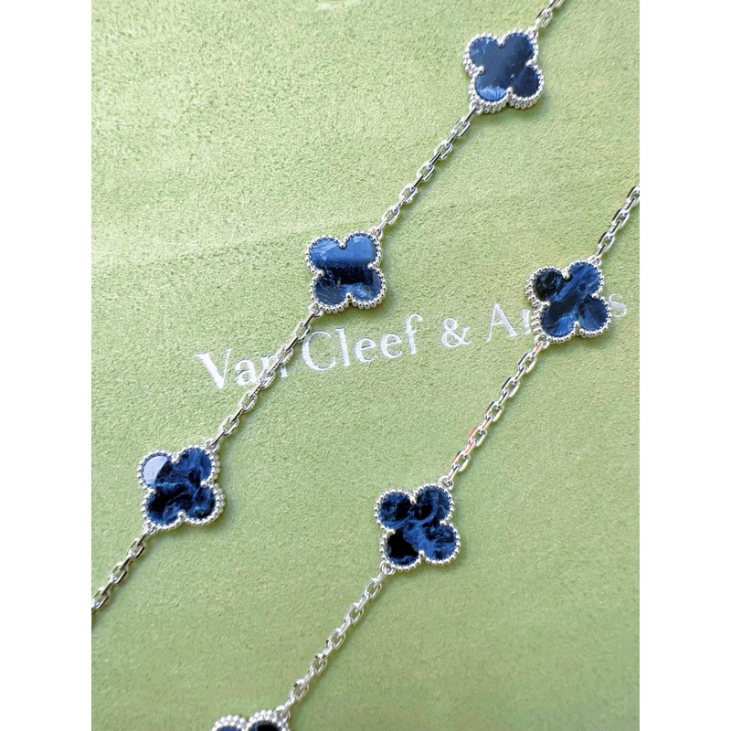 Van Cleef & ArPels Vintage Alhambra Long Necklace 20 Motifs In Silver & Blue