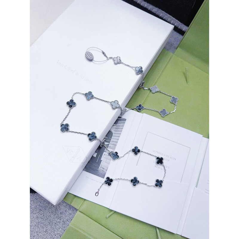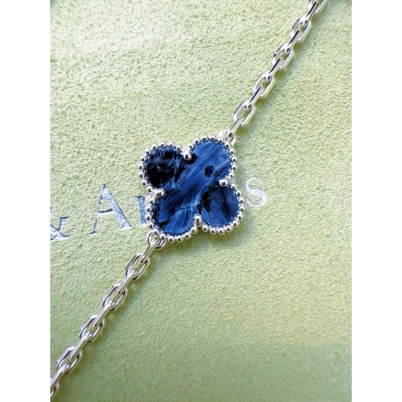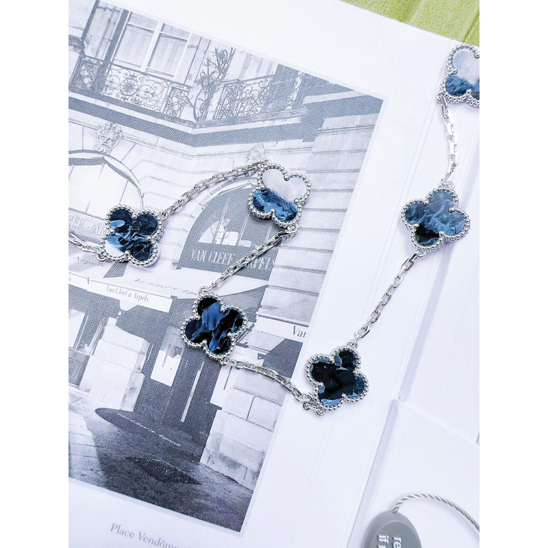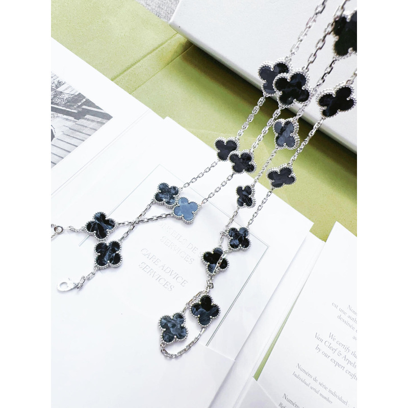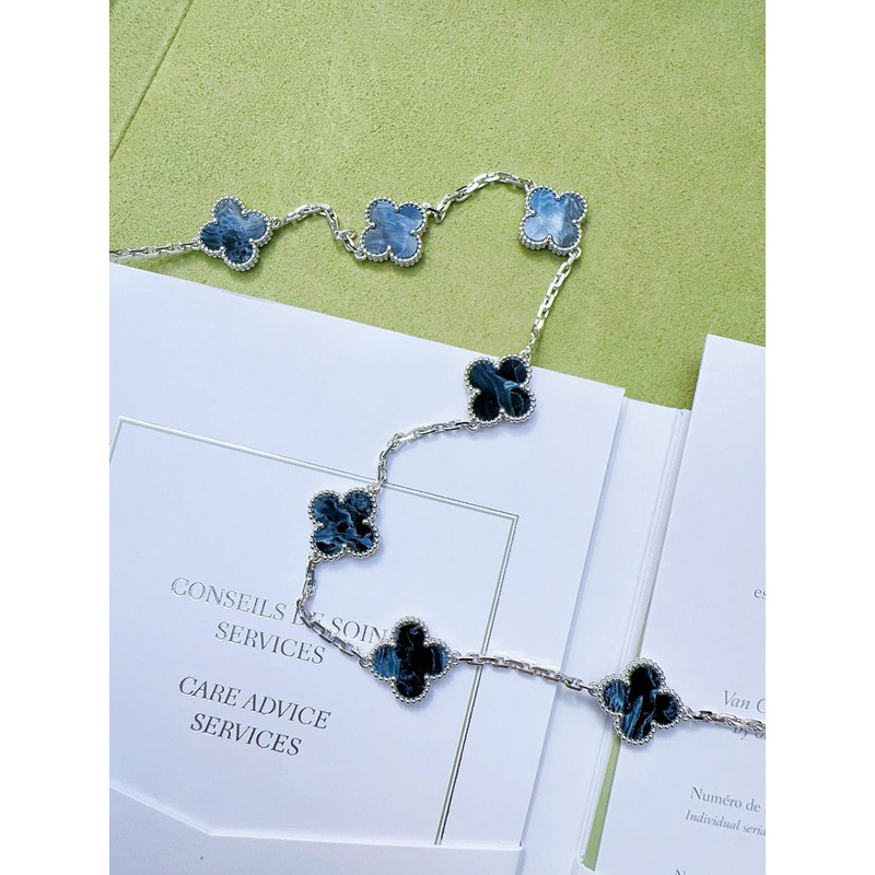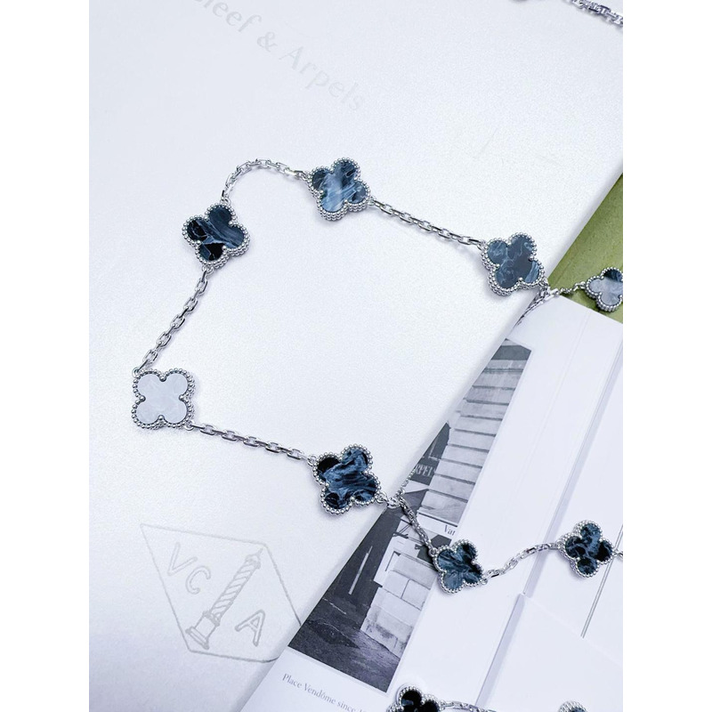 Van Cleef & ArPels Vintage Alhambra Long Necklace 20 Motifs In Silver & Blue