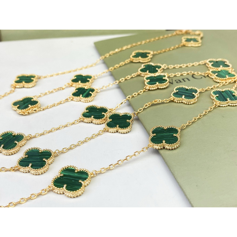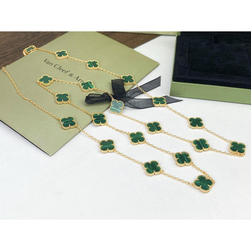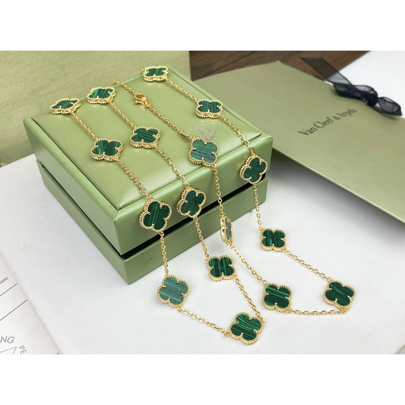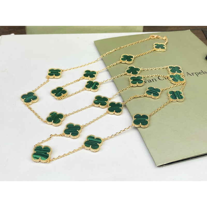 Van Cleef & ArPels Vintage Alhambra Long Necklace 20 Motifs Yellow Gold And Malachite