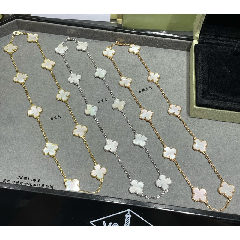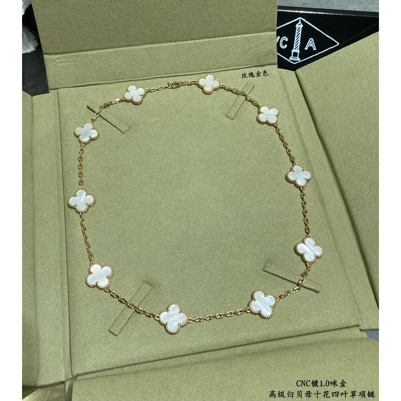 Van Cleef & ArPels Vintage Alhambra Necklace, 10 Motifs, 18K White Gold with Mother-of-Pearl