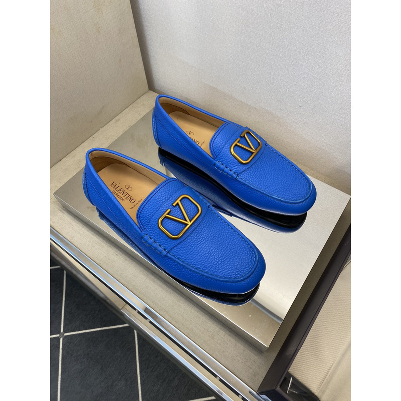 Valentino Garavani VLogo Signature Grainy Leather Loafers In Blue