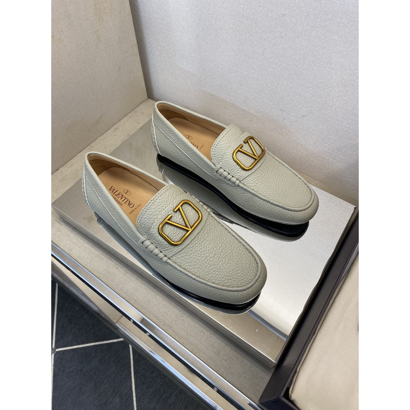 Valentino Garavani VLogo Signature Grainy Leather Loafers Light Grey